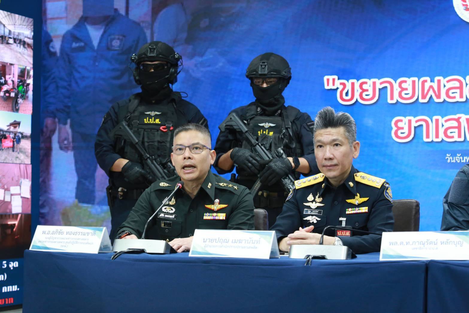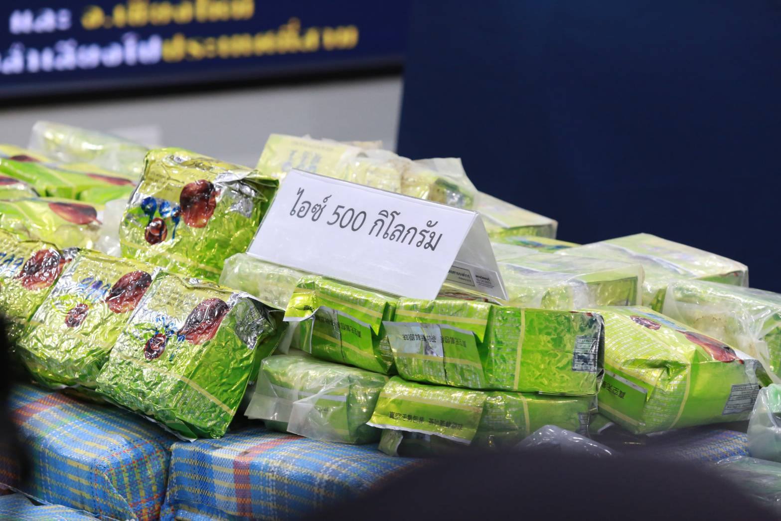 แถลงจับกุมขบวนการลักลอบลำเลียงยาเสพติดส่งต่างประเทศ จับกุมผู้ต้องหา 3 คน พร้อมไอซ์ 500 กิโลกรัม ซึ่งลักลอบลำเลียงยาเสพติดมาจากชายแดนพื้นที่สามเหลี่ยมทองคำ โดยใช้ประเทศไทยเป็นทางผ่านเตรียมลำเลียงไปยังประเทศที่สาม จากการขยายผลตรวจค้น 5 จุด (โกดัง และ บ้านพัก) ในพื้นที่ จ.เชียงราย และ กทม. พบไอซ์จำนวนหนึ่ง พร้อมอุปกรณ์การเสพ (ที่บ้านผู้ต้องหาที่ 2) ตรวจยึดทรัพย์สิน อาทิเช่น ที่ดินพร้อมสิ่งปลูกสร้าง ยานพาหนะ ทองรูปพรรณ เงินสด รวมมูลค่าประมาณ 9 ล้านบาท