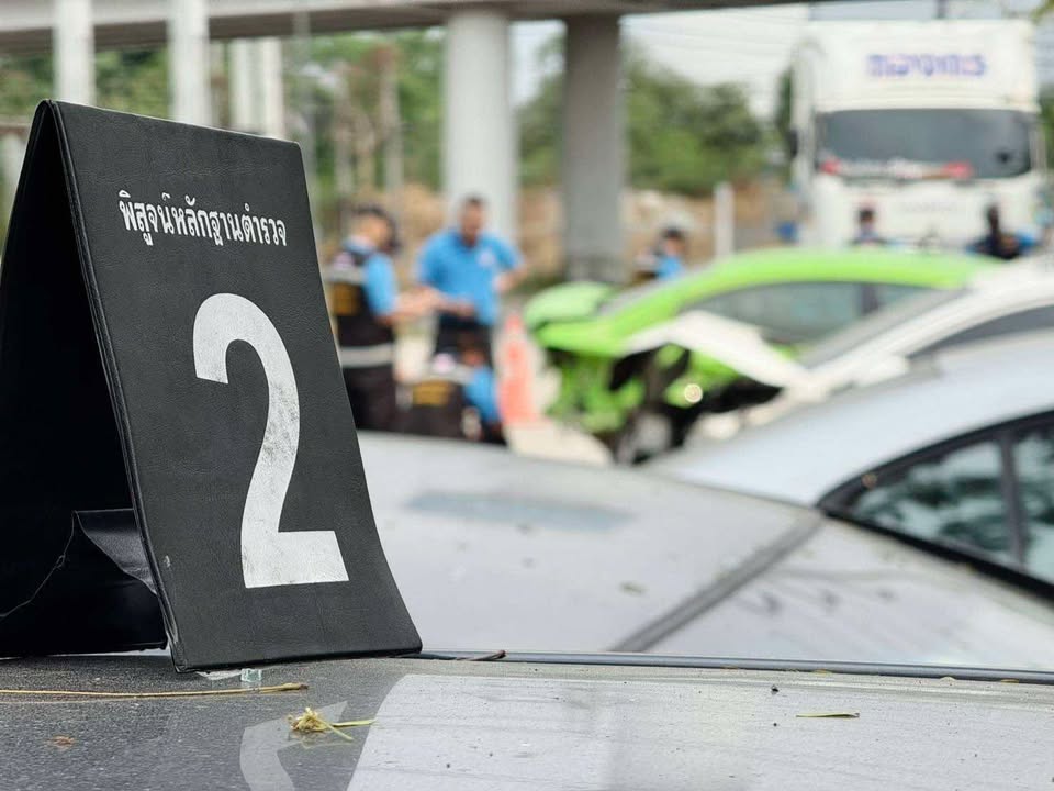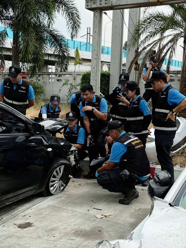 ศูนย์พิสูจน์หลักฐาน 2 ลงพื้นที่ตรวจ-เก็บหลักฐาน 13 รถซิ่งชนเละยกตี้ บนมอเตอร์เวย์ คนขับเผยเกิดเหตุ คันแรกเสียหลักหมุนก่อนฟาดกันจนวินาศสันตะโร