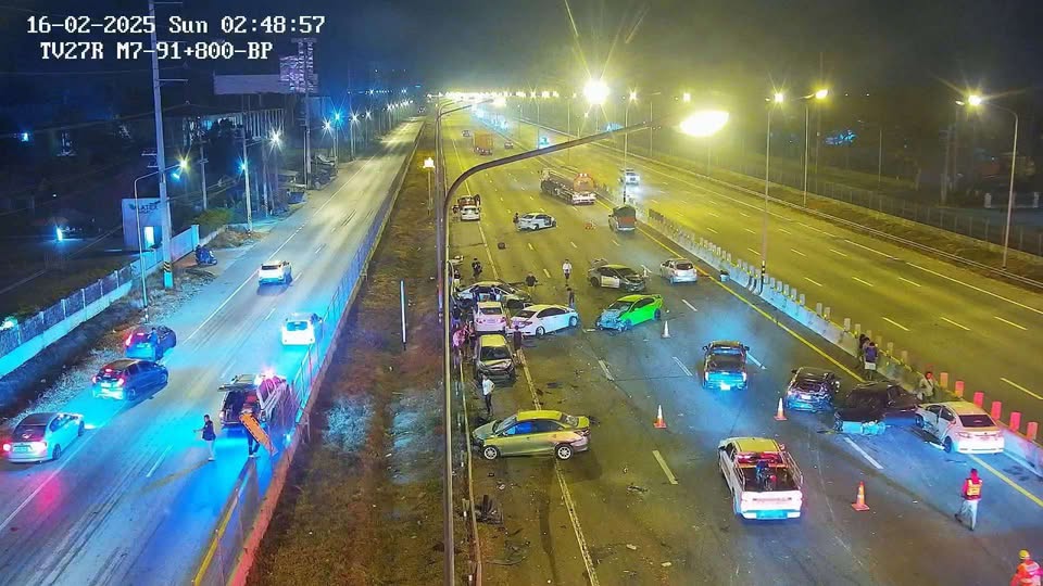 จากกรณีโซเชียล แชร์คลิปเหตุการณ์ที่เกิดขึ้นบนถนนมอเตอร์เวย์สาย 7 (กรุงเทพ-บ้านฉาง) ช่วง กม.ที่ 91 + 700 ต.บางพระ อ.ศรีราชา จ.ชลบุรี ช่วงเวลา 03.30 น. คืนวันที่ 16 ก.พ. ที่ผ่านมา รถเก๋งแต่งซิ่งนับ 10 คัน ขับแข่งกันด้วยความเร็ว แซงซ้าย ปาดขวากันบนถนน ก่อนจะเกิดอุบัติเหตุเฉี่ยวชนกันจนมีรถได้รับความเสียหายกว่า 10 คัน มีผู้ได้รับบาดเจ็บจำนวน 4 ราย หลังเกิดเหตุมีเจ้าหน้าที่กู้ภัยและเจ้าหน้าที่ตำรวจได้เข้าตรวจสอบ พร้อมกับเคลียร์พื้นที่ และอยู่ระหว่างเรียกผู้ที่เกี่ยวข้องมาสอบสในดำเนินคดี