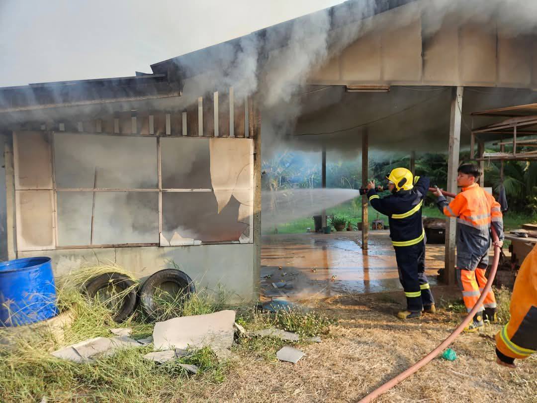 ที่เกิดเหตุ พบว่าเพลิงกำลังลุกไหม้ที่พักอาศัยมีลักษณะเป็นร้านค้าขายของ เจ้าหน้าที่พร้อมรถดับเพลิงจึงระดมฉีดน้ำเพื่อทำการระงับเหตุ โดยใช้เวลาระงับเหตุประมาณ 10 นาทีเพลิงจึงสงบลง