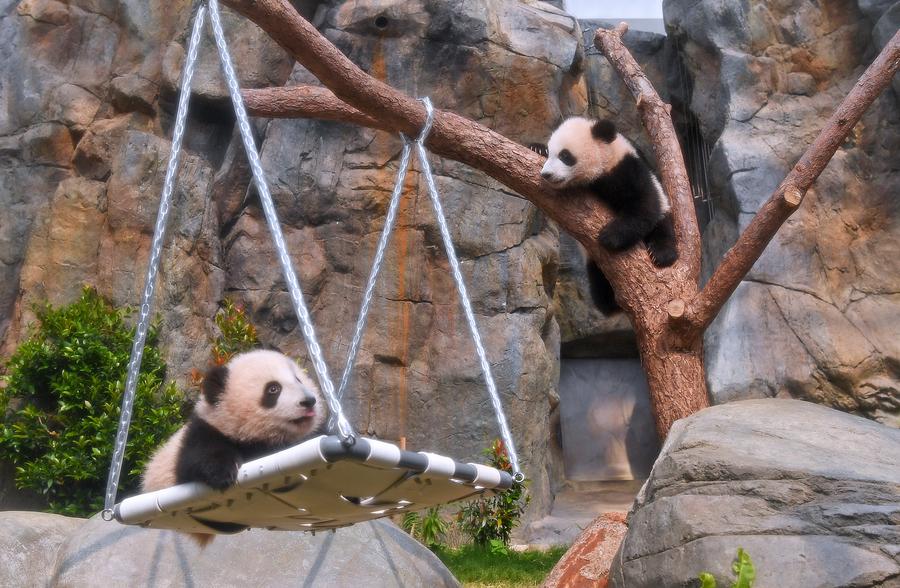 ปักกิ่ง, 17 ก.พ. ซินหัว รายงาน -- ชวนใจฟูกับความน่ารักน่าเอ็นดูของลูกแพนด้ายักษ์ฝาแฝดประจำสวนสนุกโอเชียน ปาร์ก ฮ่องกง ในเขตบริหารพิเศษฮ่องกงทางตอนใต้ของจีน ซึ่งเริ่มต้นปรากฏตัวสู่สายตาสาธารณชนอย่างเป็นทางการตั้งแต่วันอาทิตย์ (16 ก.พ.) ที่ผ่านมา