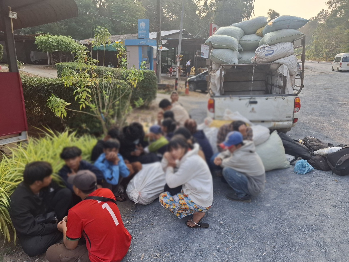 กระทั่งเวลา 08.30 น.เจ้าหน้าที่ตรวจพบรถกระบะต้องสงสัย ขับมาจาก อ.สังขละบุรี มุ่งหน้า อ.ทองผาภูมิ จึงได้ให้สัญญาณหยุดรถเพื่อตรวจสอบ พบ นายอะคว่า ไม่มีชื่อสกุล อายุ 34 ปี เป็นผู้ขับขี่ จึงได้ทำการตรวจค้นท้ายกระบะ ซึ่งบรรทุกกระสอบมันสำปะหลังมาจำนวนมาก หลังจากที่เจ้าหน้าที่ทำการตรวจค้นอย่างละเอียด พบช่องลับท้ายกระบะ ซึ่งถูกดัดแปลงเป็นช่องลับให้สามารถขนแรงงานต่างด้าวได้