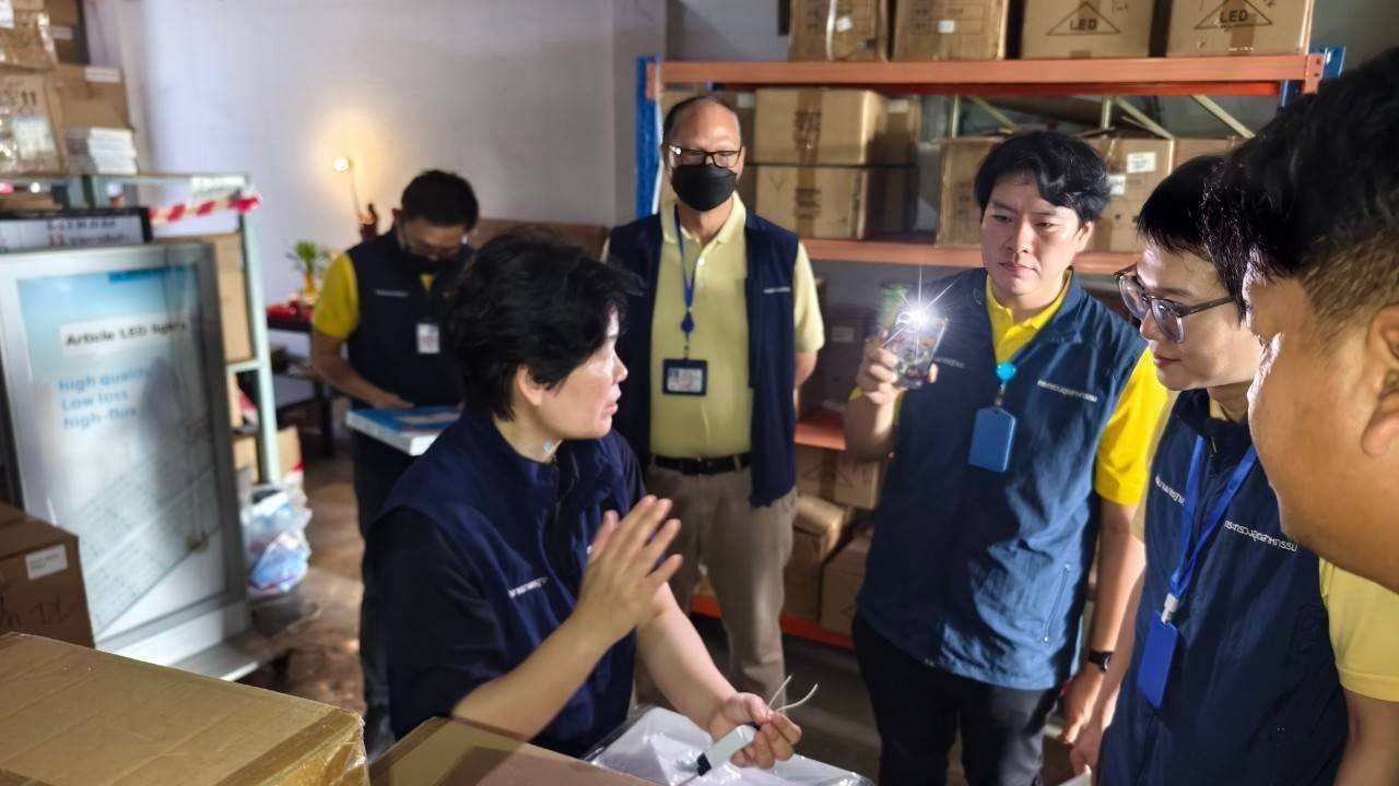 น.ส.ฐิติภัสร์ กล่าวว่า ทีมชุดตรวจการสุดซอยได้เข้าตรวจร้านขายเครื่องใช้ไฟฟ้าของบริษัท นิว สตาร์ไลท์ เทค (ไทยแลนด์) จำกัด แขวงสวนหลวง เขตสวนหลวง กรุงเทพฯ โดยระบุชื่อนายต้า ชิ่ง วู๋ เป็นกรรมการ ซึ่งบริษัทฯ เคยถูกดำเนินคดีและจับกุมเมื่อปี 2564 ได้ถูกยึดอายัดของกลางกว่า 11 ล้านบาท และทางคณะกรรมการมาตรฐานผลิตภัณฑ์อุตสาหกรรม (กมอ.) ได้มีคำสั่งให้ทำลายของกลาง และเมื่อวันที่ 23 มกราคม 2568 ที่ผ่านมา สมอ. ได้เข้าดำเนินการตามคำสั่ง กมอ. ปรากฏว่าของกลางทั้งหมดหายไป เจ้าหน้าที่จึงได้ลงบันทึกประจำวันและดำเนินคดี พร้อมขยายผลต่อโดยตรวจพบสินค้าไม่มี มอก. ล็อตใหม่มูลค่ากว่า 26.3 ล้านบาท เช่น หลอดไฟแอลอีดี โคมไฟ หลอดไฟขั้วเกลียว แหล่งจ่ายไฟสำหรับคอมพิวเตอร์ อะแดปเตอร์ สายไฟ และป้ายไฟ เป็นต้น จึงได้ยึดอายัดและดำเนินคดีข้อหาจำหน่ายสินค้าไม่ได้มาตรฐานและนำของกลางมาเก็บรักษาไว้เพื่อไม่ให้มีการกระทำที่ฝ่าฝืนกฎหมายอีก