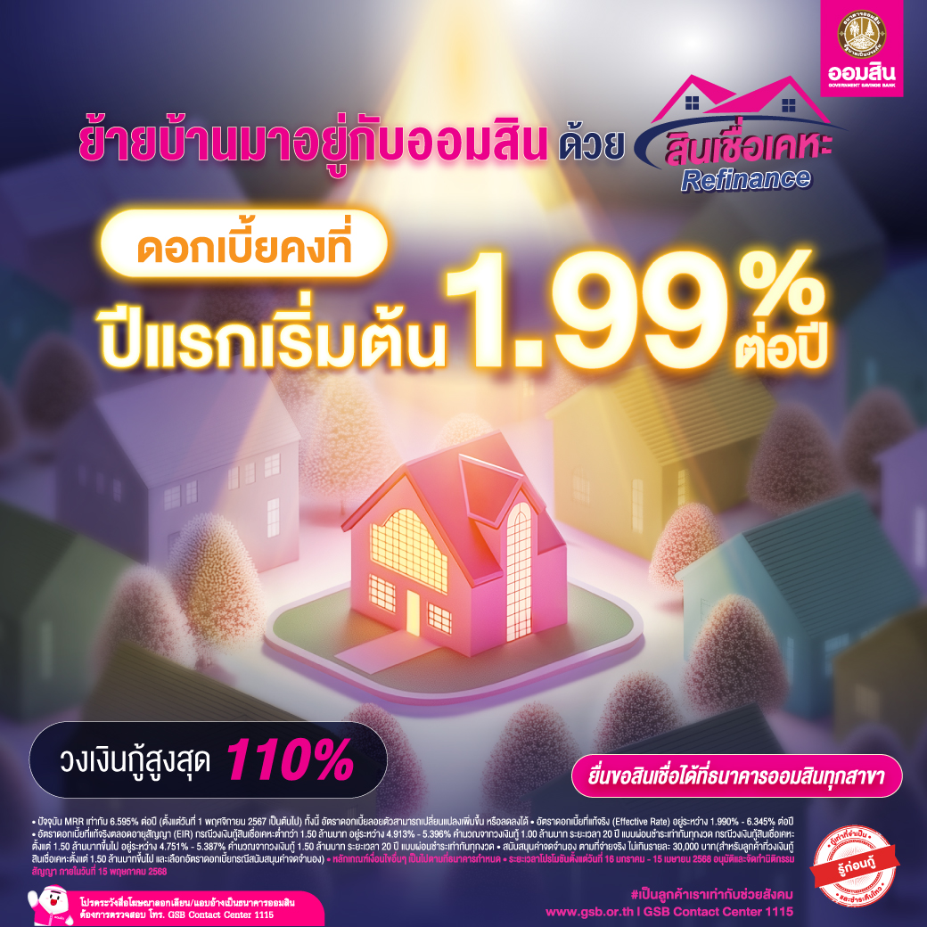ออมสินออกโปรโมชันรับปีใหม่ ! ย้ายบ้านมาอยู่กับออมสิน กับสินเชื่อเคหะ Refinance