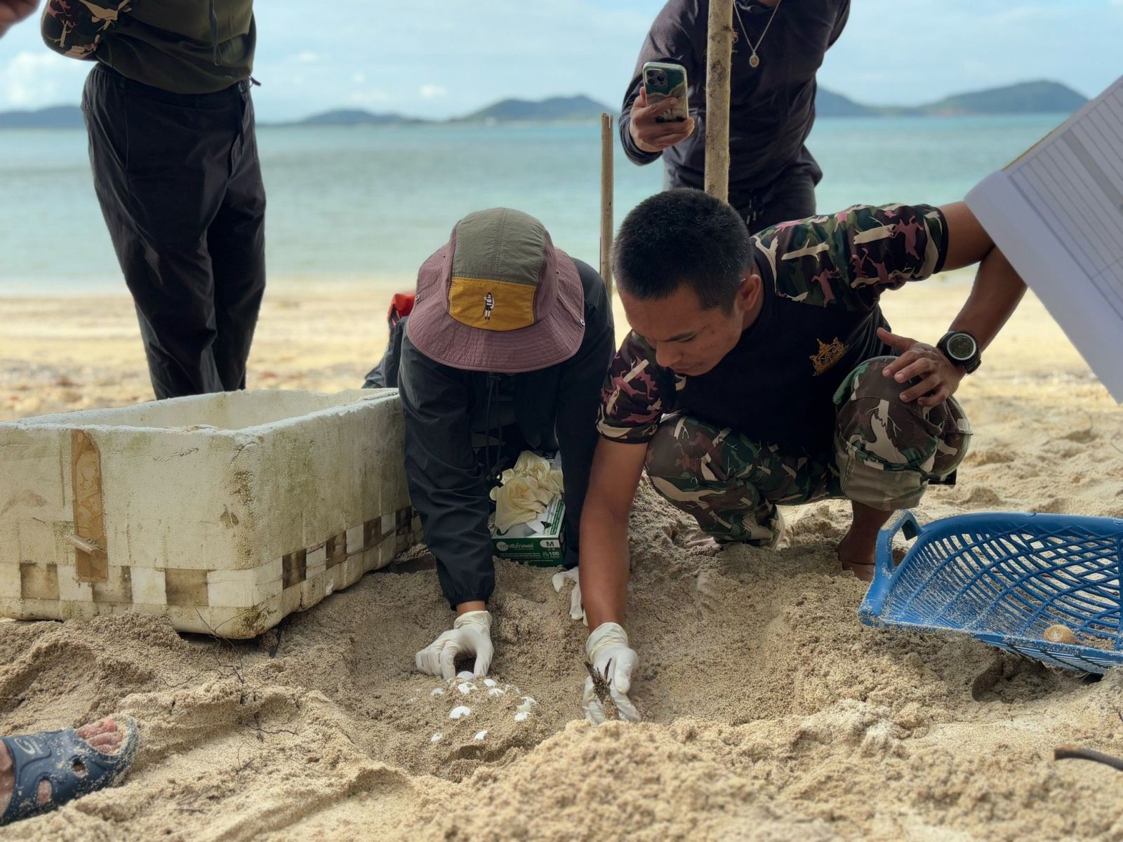 นายอุกฤษฏ์ ดีทองอ่อน หัวหน้าอุทยานแห่งชาติหมู่เกาะชุมพร เปิดเผยว่า เจ้าหน้าที่อุทยานแห่งชาติหมู่เกาะชุมพร รายงานว่าเมื่อวันที่ 21 กุมภาพันธ์ 2568 ได้พบรังไข่เต่ากระ (Hawksbill sea turtle) สัตว์ทะเลใกล้สูญพันธุ์ถึง 2 รัง รวม 338 ฟอง โดยพบรังแรกบริเวณชายหาดด้านทิศตะวันตกของเกาะกุลา ต.ด่านสวี อ.สวี มีไข่เต่าจำนวน 173 ฟอง และรังที่สองพบที่ชายหาดทิศตะวันตกเฉียงเหนือของเกาะทองหลาง ต.หาดทรายรี อ.เมืองชุมพร มีไข่เต่าอีก 165 ฟอง การพบไข่เต่ากระจำนวนมากถึงสองรังในครั้งนี้ นับเป็นนิมิตหมายที่ดีอย่างยิ่ง เพราะเต่ากระเป็นเต่าทะเลที่พบได้ยากในน่านน้ำไทย ล่าสุดเจ้าหน้าที่เราได้ย้ายไข่เต่าทั้งหมดไปยังบ่อฟักที่ปลอดภัยทันที เพื่อป้องกันการถูกทำลายจากสัตว์ธรรมชาติ โดยเฉพาะตัวเงินตัวทองที่มักคุ้ยเขี่ยทำลายไข่ โดยทางอุทยานฯ ได้จัดเจ้าหน้าที่ผลัดเปลี่ยนหมุนเวียนดูแลไข่เต่าตลอด 24 ชั่วโมง พร้อมติดตั้งระบบรักษาความปลอดภัยเพิ่มเติม เพื่อให้มั่นใจว่าไข่เต่าทุกฟองจะได้ฟักออกเป็นตัวอย่างปลอดภัย