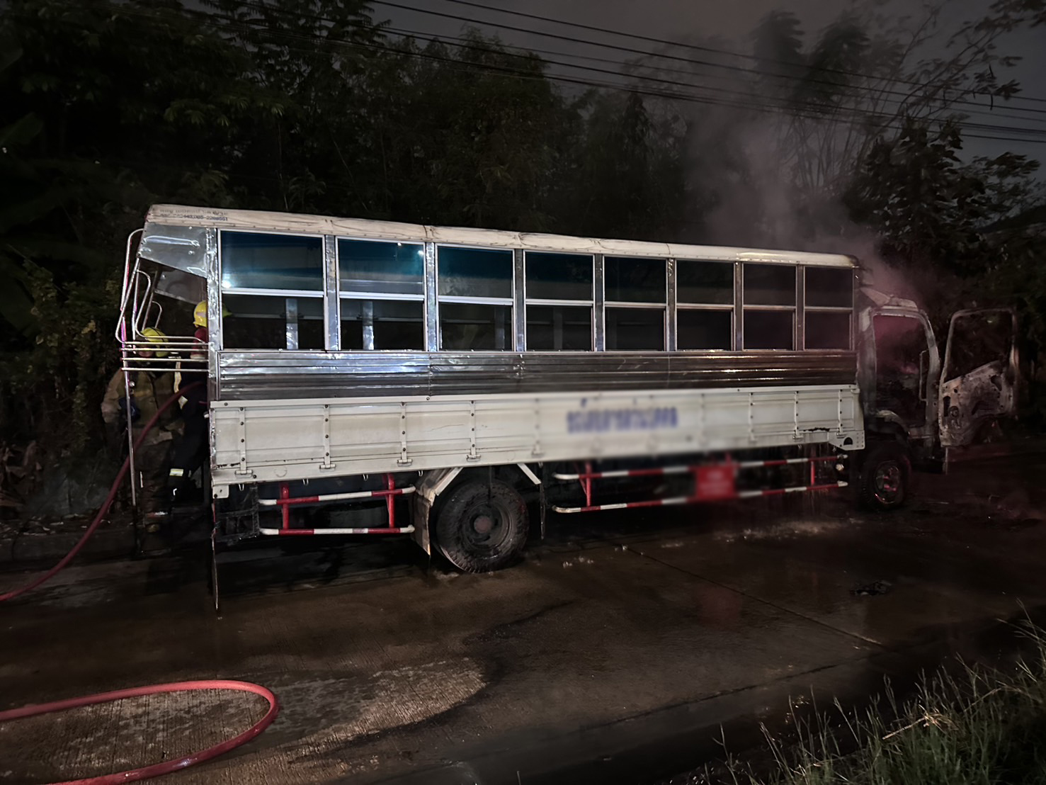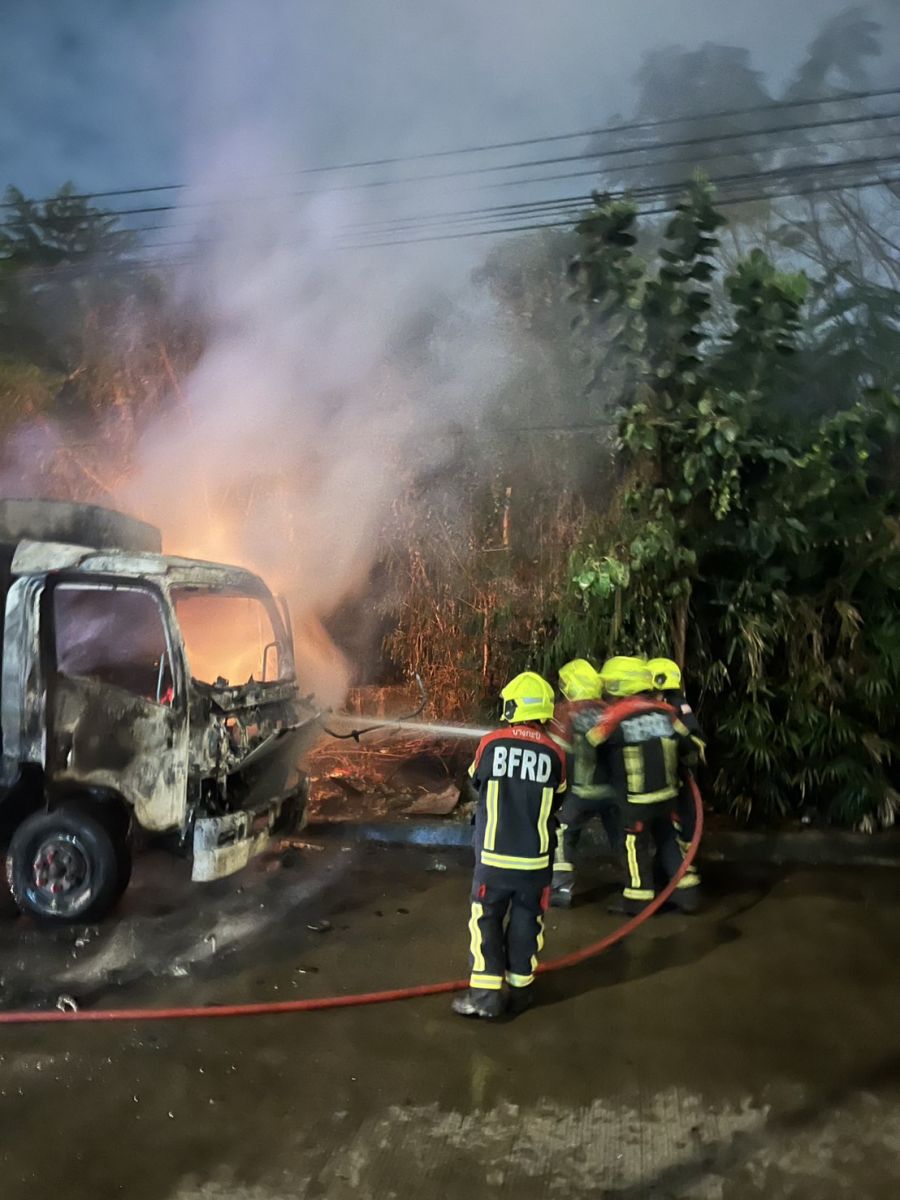 ลักษณะที่เกิดเหตุเป็นรถยนต์บรรทุก 6 ล้อ ยี่ห้อฮีโน่ สีขาว ป้ายทะเบียน กรุงเทพมหานคร รถใช้น้ำมันดีเซลเป็นเชื้อเพลิง เพลิงลุกไหม้เสียหายบริเวณห้องเครื่องรถยนต์ ลุกลามต้นไม้และรั้วบ้านเรือนประชาชนเสียหายเล็กน้อย รถดับเพลิงใช้น้ำทำการดับเพลิงสงบ