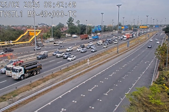 09.43 น. วงแหวนตะวันออก (ทล.9) มุ่งหน้าบางพลี กม.51+300 ด่านทับช้าง 1 มีงานซ่อมบำรุง การจราจรชะลอตัวภาพ กองทางหลวงพิเศษระหว่างเมือง กรมทางหลวง