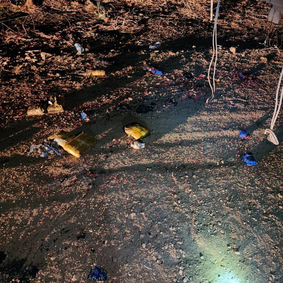 โดยเจ้าหน้าที่ บช.ปส.ได้ขึ้นไปดับไฟ บริเวณท้ายรถ ผลจากการตรวจสอบเบื้องต้น พบ ยาเสพติด (ยาบ้าหรือเมทแอมเฟตามีน) ถูกเผา และหลงเหลือตกลงพื้น ประมาณ 30,000 เม็ด เมื่อสามารถดับไฟได้ จึงได้ประสานพนักงานสอบสวนเข้าตรวจสอบที่เกิดเหตุ
