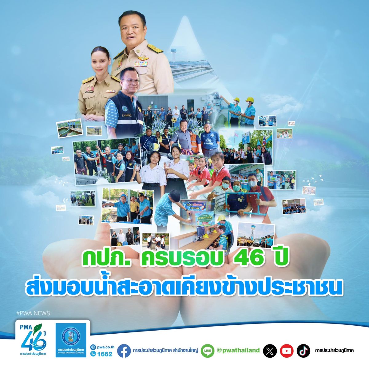 นายจักรพงศ์ คำจันทร์ ผู้ว่าการการประปาส่วนภูมิภาค (กปภ.) กล่าวเพิ่มเติมว่า กปภ. กำหนดจัดงานวันสถาปนาครบรอบ 46 ปี ในวันศุกร์ที่ 28 กุมภาพันธ์ 2568 โดยผู้บริหารและพนักงาน กปภ. ได้เข้าร่วมพิธีพราหมณ์บวงสรวงท่านเวสสุวรรณเทพ ท่านเจ้าแม่คงคาเทวีเทพ และพระแม่ธรณีวิสุทธิสรรพสักขีบารมีธำรงชล พิธีถวายเครื่องไหว้ศาลตา-ยาย พิธีเจริญพระพุทธมนต์ พิธีฉลองพระพุทธรูปประจำสำนักงานใหญ่ กปภ. และร่วมกันทำบุญตักบาตรอาหารแห้งแด่พระสงฆ์ 9 รูป นอกจากนี้ กปภ. ได้จัดพิธีมอบรางวัลและประกาศเกียรติคุณรางวัล กปภ. เขตและสาขาดีเด่น รางวัลโครงการการส่งเสริมความเป็นเลิศด้านการลดน้ำสูญเสีย รางวัลผลงาน The Best of PWA Always-on รางวัลนักบริการมือทองสมองเพชร และรางวัลทำดี มีผล คนยกย่อง เพื่อสร้างขวัญกำลังใจให้แก่ผู้ปฏิบัติงานที่มุ่งมั่นตั้งใจทำงานจนผลงานเป็นที่ประจักษ์ชัดเจนอีกด้วย ในด้านของการดำเนินงานในปี 2567 กปภ. ได้ดำเนินภารกิจตอบสนองนโยบายของกระทรวงมหาดไทย โดยเฉพาะอย่างยิ่ง นโยบาย “น้ำดื่มสะอาด บริการประชาชน” เพื่อยกระดับคุณภาพชีวิต ลดความเหลื่อมล้ำ และเพิ่มโอกาสให้ประชาชนเข้าถึงน้ำที่สะอาดปลอดภัยและลดค่าใช้จ่ายในการครองชีพ ซึ่งจะเป็นการยกระดับคุณภาพชีวิตของประชาชนให้ดียิ่งขึ้น พร้อมขยายเขตพื้นที่การให้บริการอย่างต่อเนื่อง เพื่อให้ลูกค้าประชาชนกว่า 5.45 ล้านราย มีน้ำประปาสะอาด ปลอดภัย ใช้อุปโภคบริโภค ยิ่งไปกว่านั้น กปภ. ยังมอบโอกาสสร้างอาชีพและรายได้ รวมถึงดูแลสังคม ชุมชนและสิ่งแวดล้อม ผ่านโครงการ CSR ต่าง ๆ เพื่อให้บรรลุเป้าหมายยกระดับคุณภาพชีวิตของประชาชนด้วยการให้บริการน้ำประปาอย่างเพียงพอและทั่วถึง พร้อมทุ่มเทพัฒนากิจการประปาไทยให้เติบโตอย่างมั่นคงและยั่งยืน