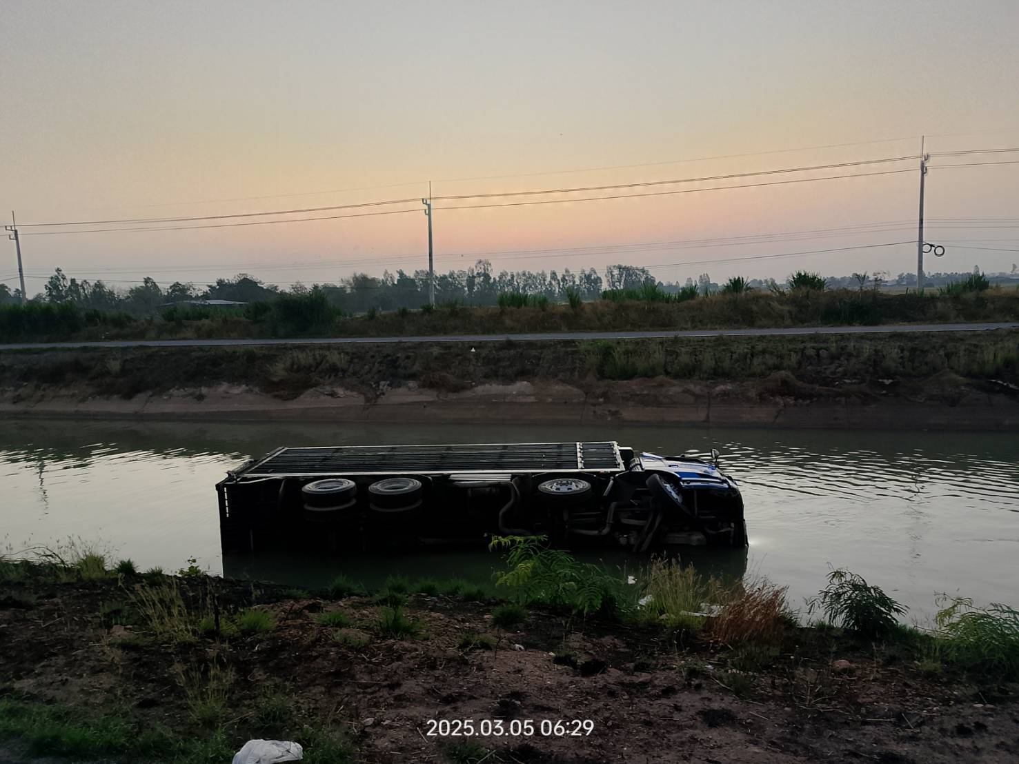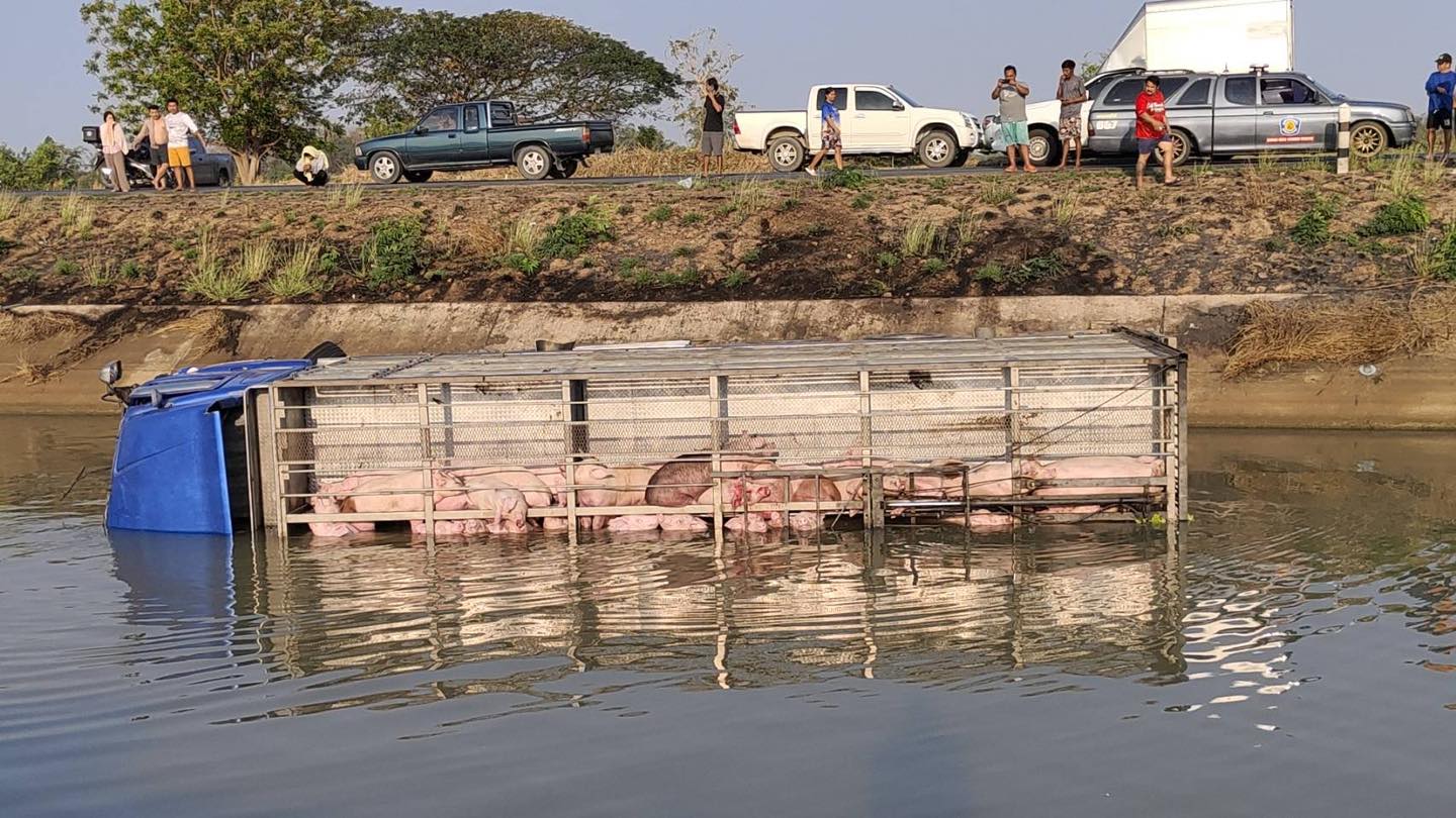 08.12 น. ถนนริมคลองมะขามเฒ่าอู่ทอง ใกล้เคียงวัดสระด่าน อ.ดอนเจดีย์ จ.สุพรรณบุรี อุบัติเหตุ รถบรรทุกหมู เสียหลักตกลงไปในคลอง ขณะนี้เจ้าหน้าที่มูลนิธิเสมอกันสุพรรณบุรี อยู่ระหว่างช่วยเหลือ #อุบัติเหตุ #สุพรรณบุรี #รายงานจราจร #FM91