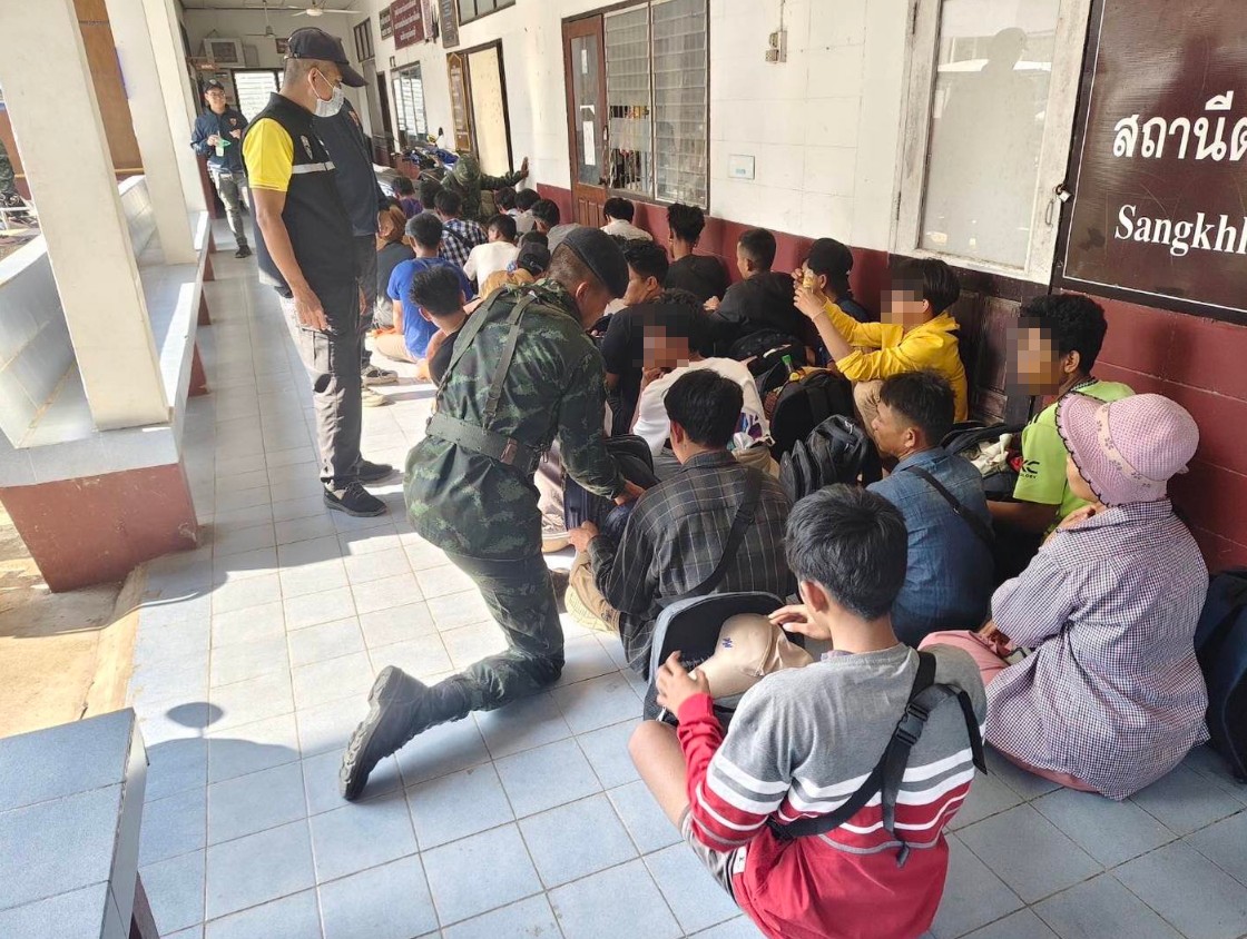 ขณะที่ กลุ่มที่ 2 จับได้เมื่อเวลา 14.30 น. เจ้าหน้าที่ทำการลาดตระเวนเฝ้าตรวจพื้นที่ บ้านไหล่น้ำ ตำบลหนองลู อำเภอสังขละบุรี ร่วมกับ กองร้อยตำรวจตระเวนชายแดนที่ 134, สถานีตำรวจภูธรสังขละบุรี และฝ่ายปกครองอำเภอสังขละบุรี เจ้าหน้าที่ทหารสังเกตพบกลุ่มบุคคลกำลังเดินลัดเลาะชายป่า จึงเข้าทำการตรวจสอบ พบกลุ่มบุคคลลักษณะคล้ายต่างด้าว จำนวน 30 ราย ให้การสารภาพว่าพวกตนเดินทางมาจากย่างกุ้งและเนปิดอว์ หลบหนีข้ามชายแดนผ่านช่องทางธรรมชาติบ้านบ่อญี่ปุ่น จากนั้นขึ้นรถยนต์บริเวณถนนหมายเลข 323 เพื่อเดินทางมาพักคอยบริเวณ ชายป่า บ้านไหล่น้ำ หมู่ 3 ตำบลหนองลู อำเภอสังขละบุรี และจะมีขบวนการลักลอบขนแรงงานต่างด้าวเข้าไปทำงานใน อำเภอมหาชัย จังหวัดสมุทรสาครเช่นเดียวกัน โดยจะเสียค่าจ้างให้นายหน้า 20,000 บาท เมื่อถึงปลายทาง แต่ถูกเจ้าหน้าที่จับกุมได้เสียก่อน เจ้าหน้าที่จึงได้ทำการควบคุมกลุ่มบุคคลดังกล่าวไว้ทั้งหมด และแสดงเจตนาขอตรวจสอบเอกสารประจำตัวที่ทางราชการออกให้ ปรากฏว่าบุคคลทั้ง 2 กลุ่ม ไม่สามารถแสดงเอกสารที่ทางราชการออกให้ได้ เจ้าหน้าที่จึงแจ้งข้อกล่าวหา "เป็นบุคคลต่างด้าวเดินทางเข้ามา และอยู่ในราชอาณาจักรโดยไม่ได้รับอนุญาต" พร้อมนำตัวส่งพนักงานสอบสวน สภ.ทองผาภูมิ และ สภ.สังขละบุรี ดำเนินคดีตามกฎหมายต่อไป