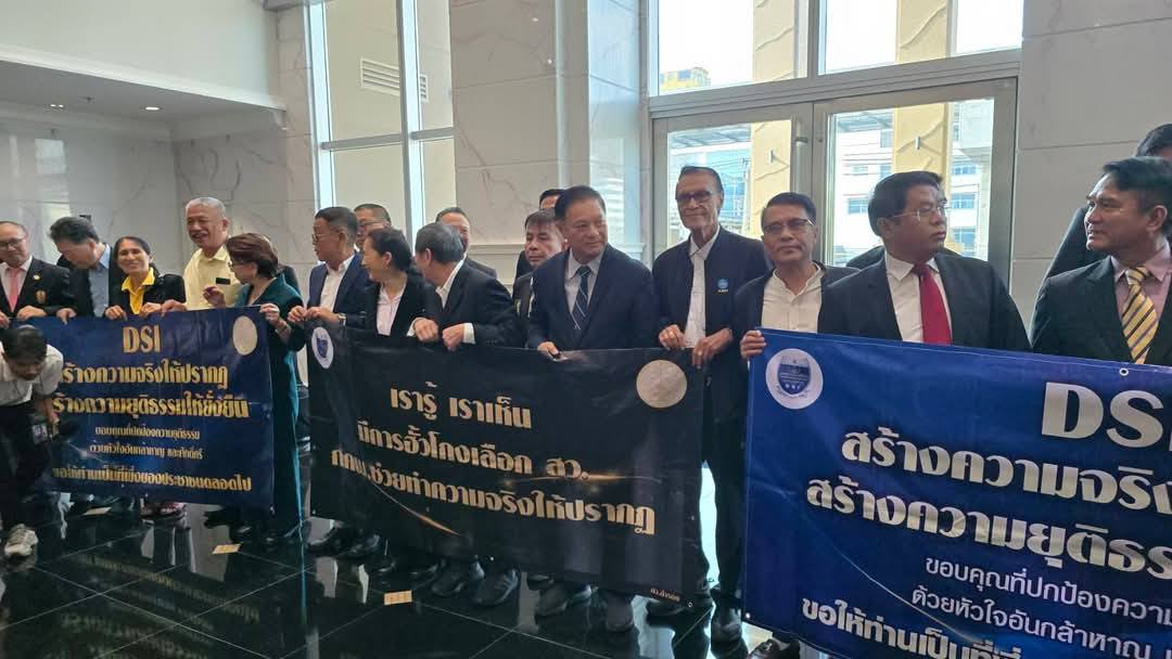 ขณะเดียวกัน บรรยากาศที่กระทรวงยุติธรรม กลุ่ม สว.สำรอง 50 คน เดินทางมาแสดงออกเชิงสัญลักษณ์ ให้กำลังใจ พร้อมฟังผลการรับพิจารณา ว่า กพค.จะรับเป็นคดีพิเศษหรือไม่ หลังจากเมื่อวันที่ 25 ก.พ.ที่ผ่านมา เลื่อนวาระพิจารณาโดยให้เหตุผลขอให้เชิญ กกต.มาชี้แจงก่อน