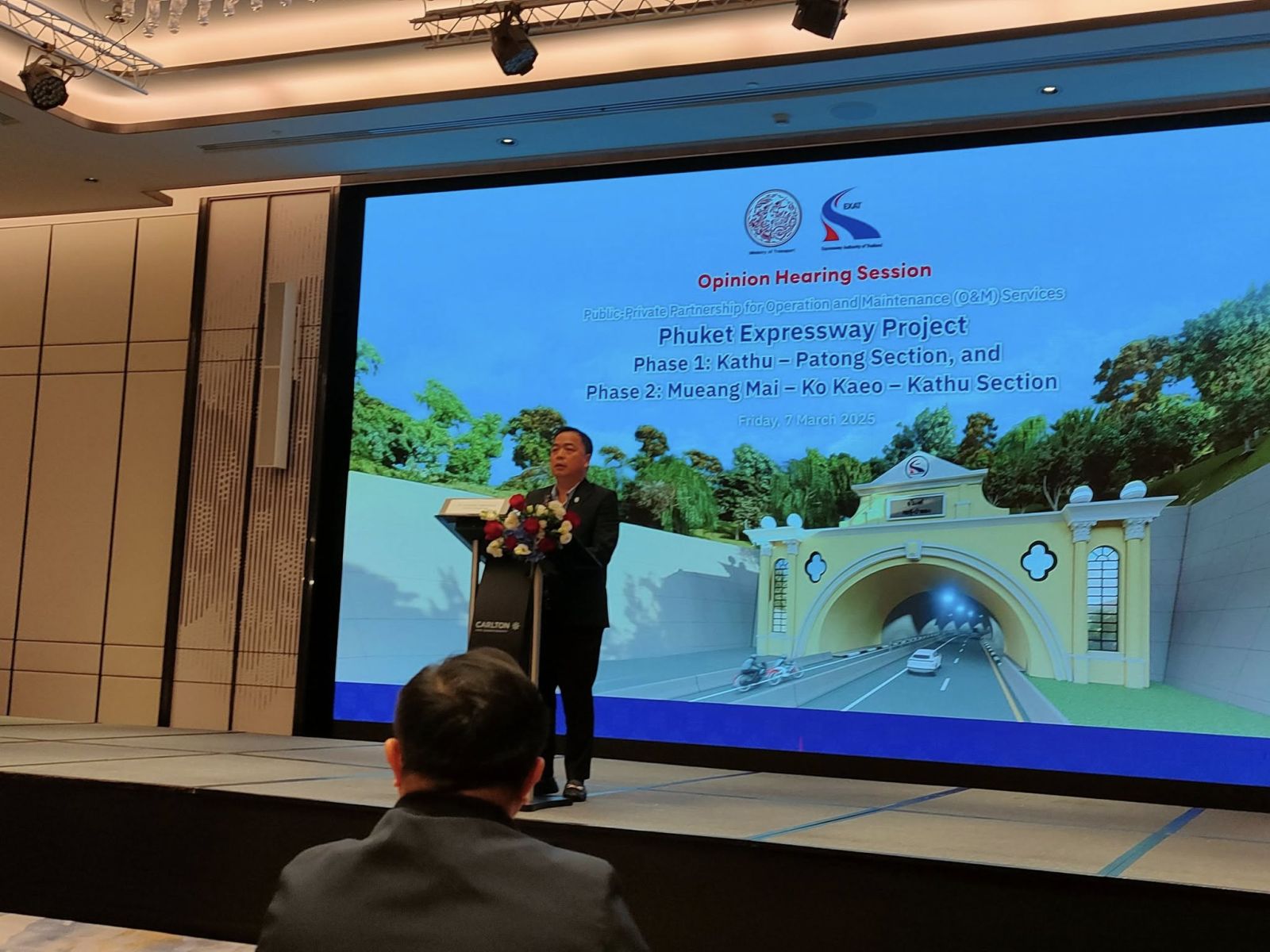 วันนี้(7 มี.ค.68) การทางพิเศษแห่งประเทศไทย กระทรวงคมนาคม เปิดรับฟังความคิดเห็นจากภาคเอกชน (Opinion Hearing) งานศึกษาทบทวนความเหมาะสม และจัดทำรายงานการศึกษาและวิเคราะห์โครงการ ตามพระราชบัญญัติการร่วมลงทุนระหว่างรัฐและเอกชน พ.ศ. 2562 โครงการทางพิเศษจังหวัดภูเก็ต ระยะที่ 1 ช่วงกะทู้-ป่าตอง และระยะที่ 2 ช่วงเมืองใหม่-เกาะแก้ว-กะทู้ เพื่อนำความคิดเห็นของผู้มีส่วนเกี่ยวข้องทุกภาคส่วนมาประกอบการจัดทำรายงานการศึกษาและวิเคราะห์โครงการตามพระราชบัญญัติการร่วมลงทุนระหว่างรัฐและเอกชน พศ. 2562