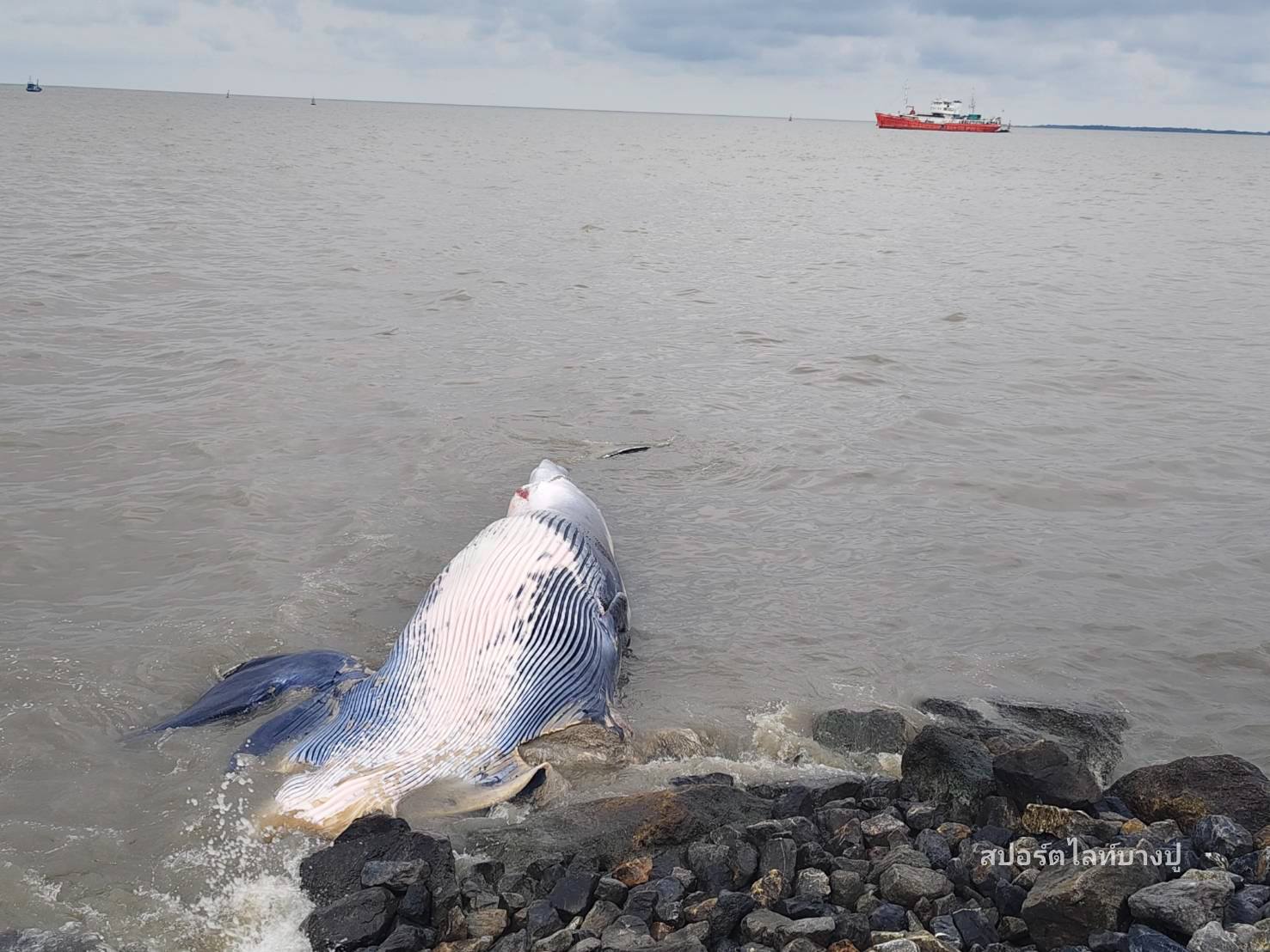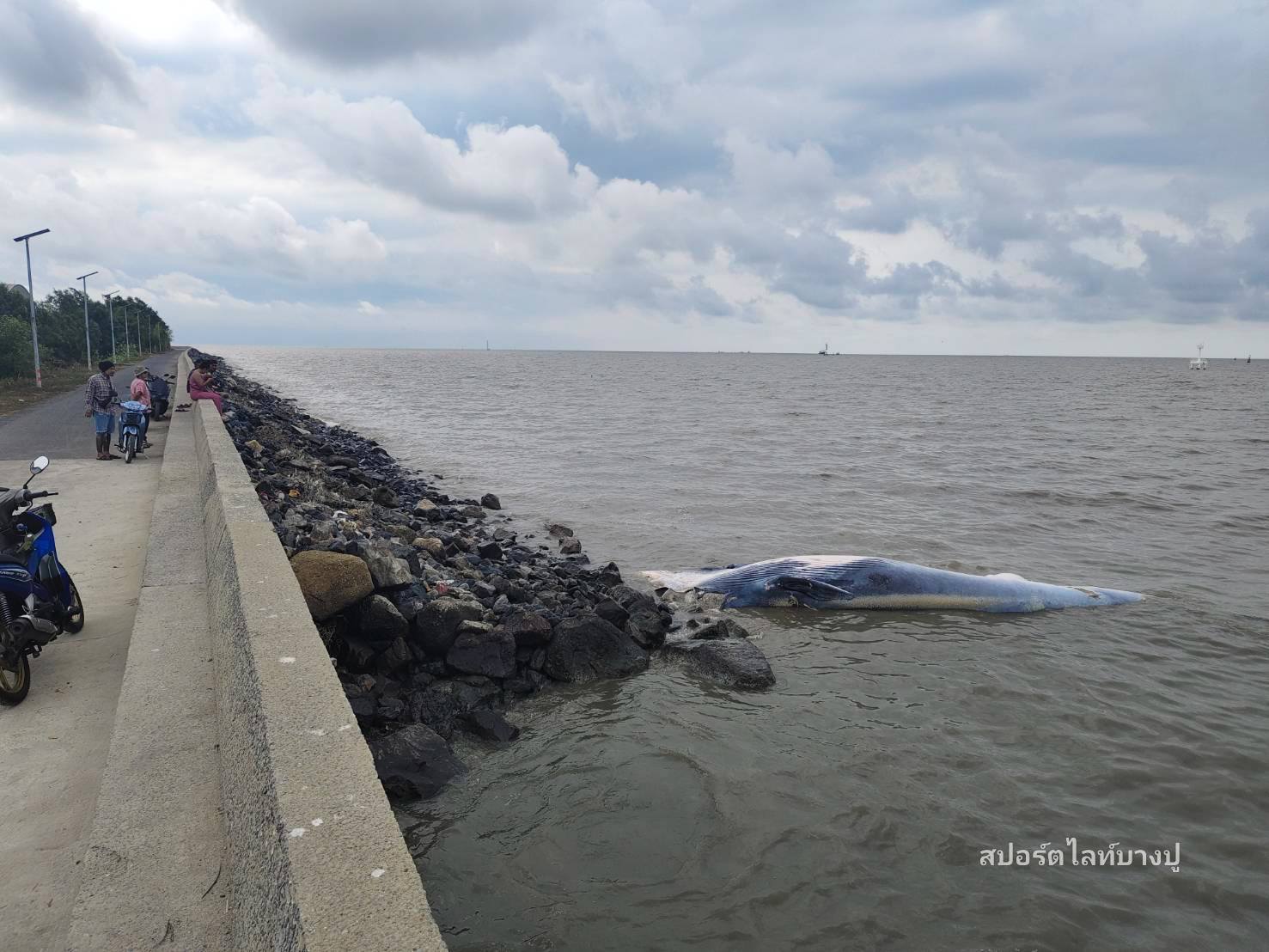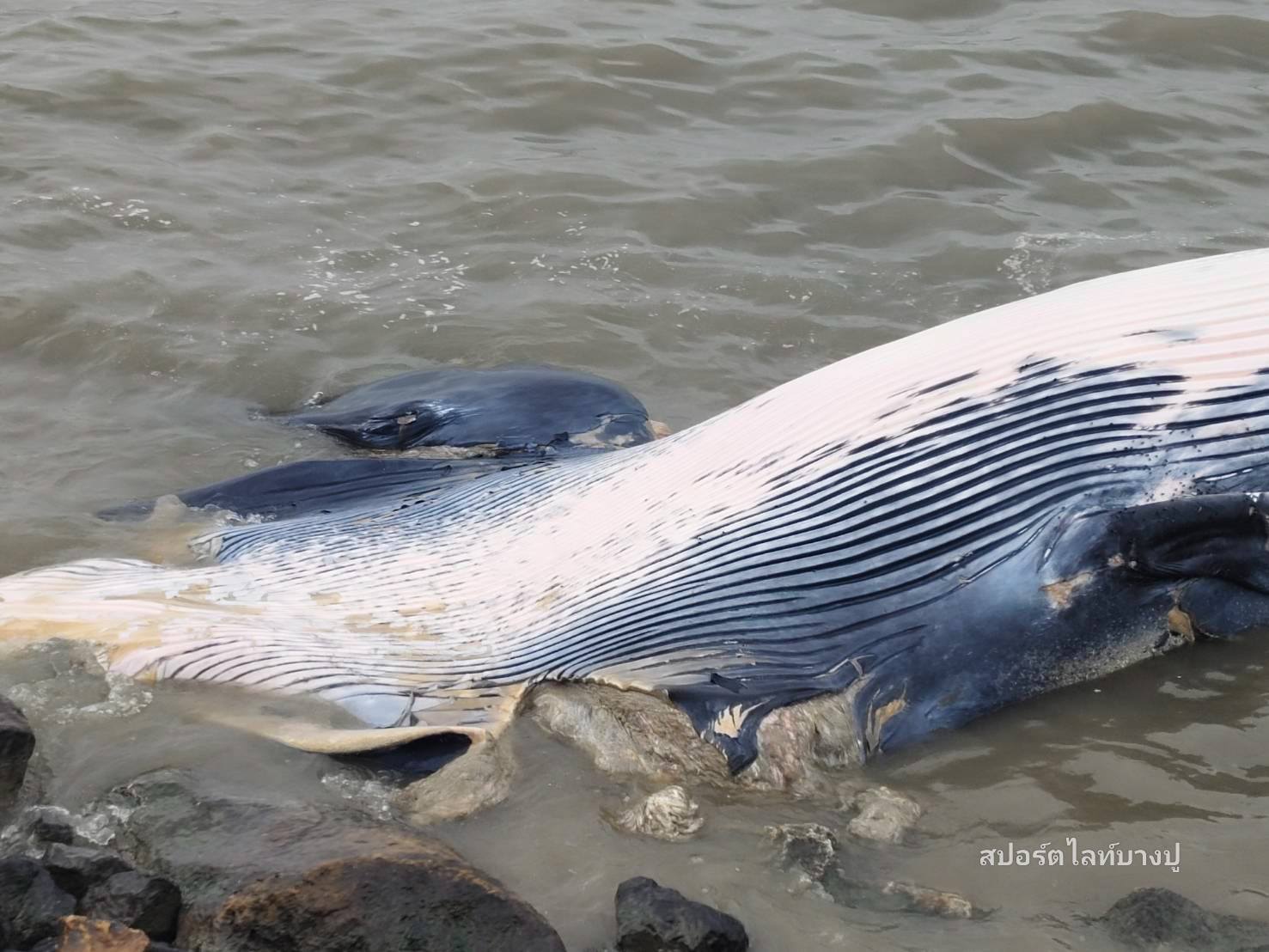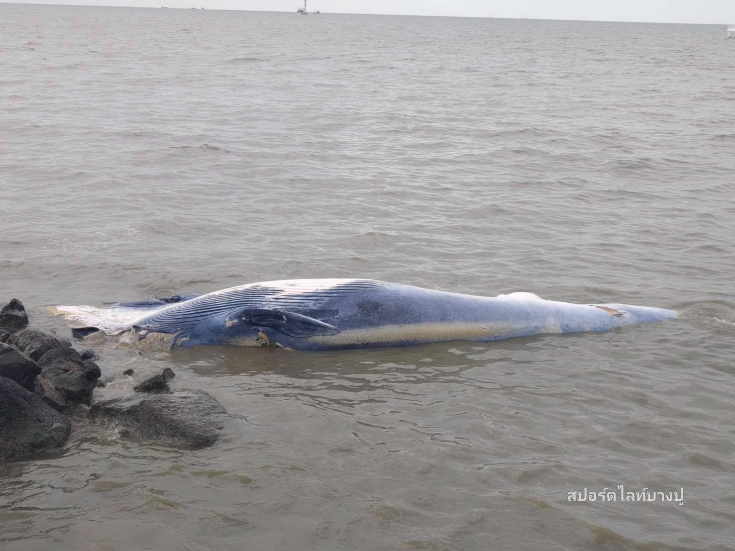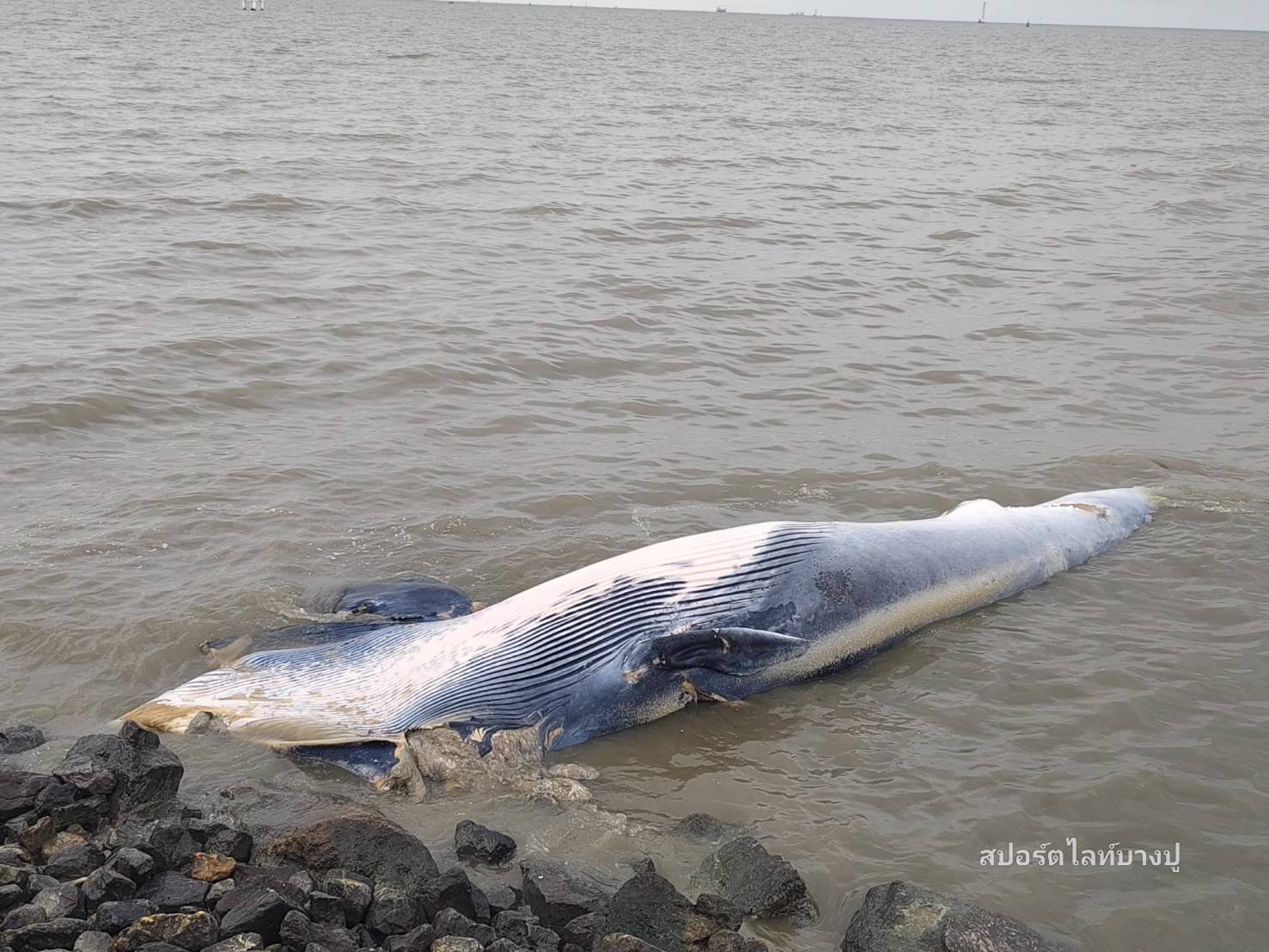 วันนี้ เมื่อเวลา 8.30 น. รับแจ้งจากชาวบ้าน พบวาฬบรูด้าเสียชีวิตเกยตื้น บริเวณชายทะเล ซอยเทศบาลบางปู 88 (โรงหมี่) โดยคาดว่าน่าเสียชีวิตมาแล้วประมาน 2-3 วัน วาฬมีอายุประมาณ 7-8 ปี มีขนาดความยาว 8-9 เมตร เป็นตัวเมีย มีบาดแผลขนาดใหญ่ บริเวณช่วงหัว และหาง