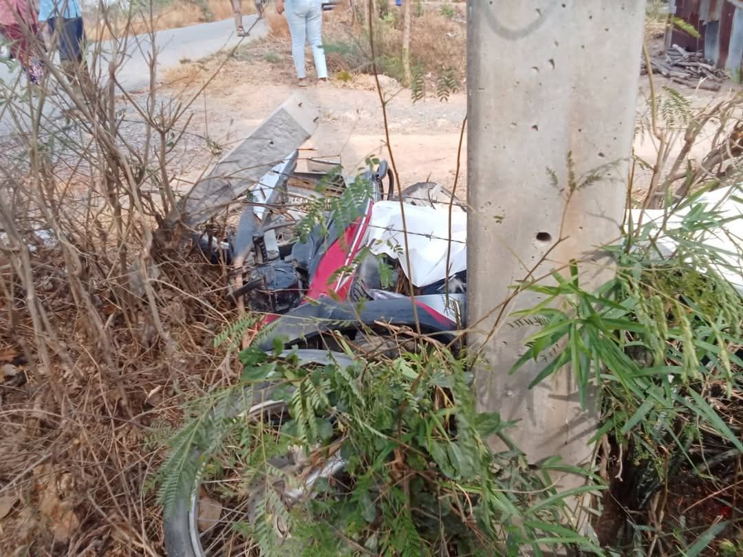 คุณลุงวัย 60 ปีขี่รถจักรยานยนต์เสียหลักชนเสาไฟฟ้า เสียชีวิตริมถนนเข้าหมู่บ้าน จ.สุพรรณบุรี