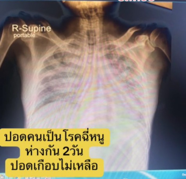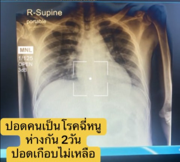 8 มีนาคม 2568 โลกออนไลน์ แชร์ คลิปจาก ผู้ใช้บัญชี TikTok @ruennarug ซึ่งเป็นพยาบาลประจำห้องฉุกเฉิน ได้เปิดเผยภาพเอกซเรย์สุดช็อกของผู้ป่วยโรคฉี่หนู ซึ่งมีผลกระทบไปถึงปอด โดยระยะเวลาห่างกันเพียงแค่ 2 วัน ในระหว่างวันที่ 3 มีนาคม และ 5 มีนาคม 2568 ก่อนที่สุดท้ายปอดจะหายเกือบทั้งหมด นับเป็นอุทาหรณ์ไม่ควรปล่อยไว้นาน และควรรีบพบแพทย์ก่อนจะสายเกินไป โพสต์ระบุว่า "ปอดคนเป็นโรคฉี่หนูห่างกัน 2 วัน ปอดเกือบไม่เหลือ มารพ.ช้า ตุยได้นะ"