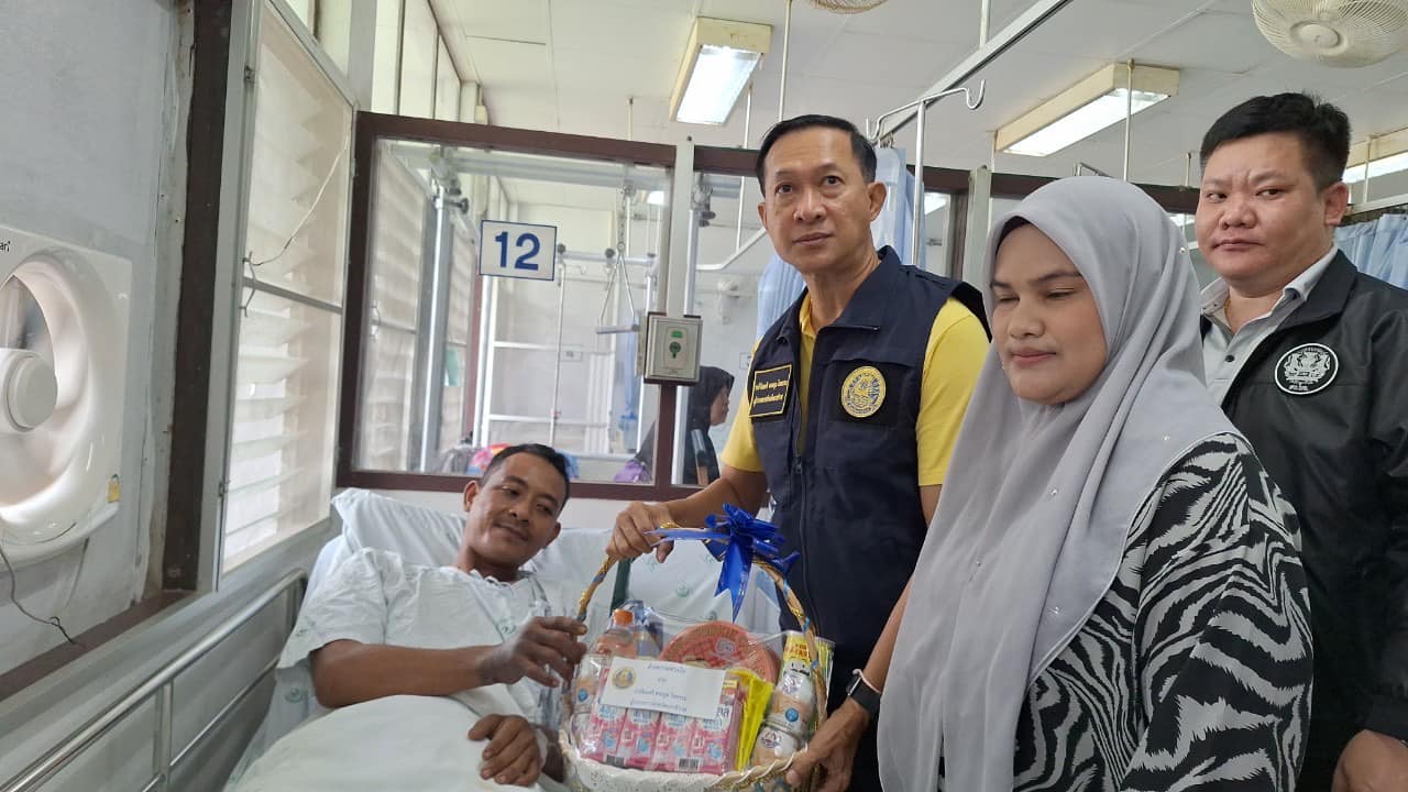 (9 มี.ค.68) ว่าที่ร้อยตรี ตระกูล โทธรรม ผู้ว่าราชการจังหวัดนราธิวาส พร้อมด้วยนางอุไรวรรณ บัวอ่อน รองนายกเหล่ากาชาด จ.นราธิวาส นางสุชาดา พันธ์นรา นายกเทศมนตรีเมืองสุไหงโก-ลก และเจ้าหน้าที่ที่เกี่ยวข้อง ลงพื้นที่โรงพยาบาลสุไหงโก-ลก เข้าเยี่ยมให้กำลังใจผู้ได้รับบาดเจ็บจากเหตุการณ์ความไม่สงบพร้อมมอบเงินช่วยเหลือเยียวยาจากเหล่ากาชาติจังหวัดนราธิวาส รายละ 2,000 บาท (ผู้ได้รับบาดเจ็บสาหัส รักษาตัวในห้อง ICU รายละ 3,000 บาท)