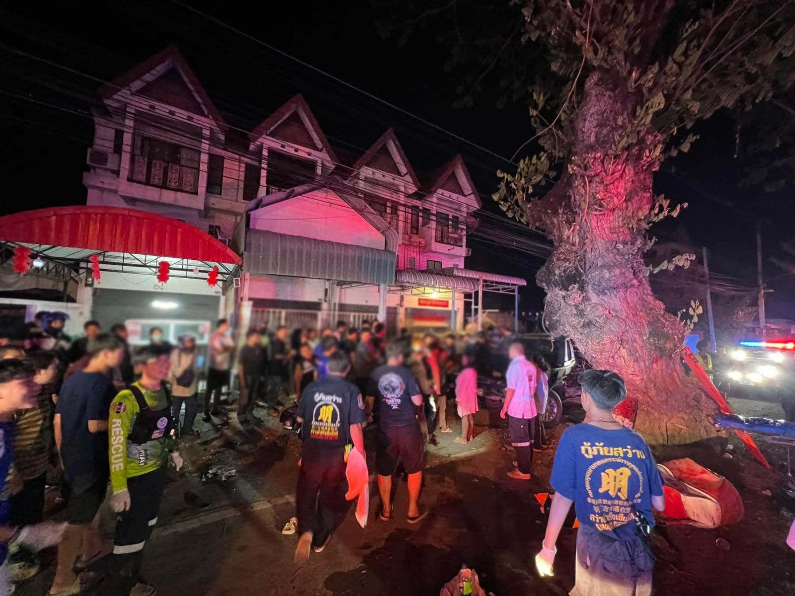 รถกระบะเสียหลักชนต้นไม้ข้างทาง ริมถนนสายสันกำแพงสายเก่า มีผู้เสียชีวิต และบาดเจ็บนับสิบราย จ.เชียงใหม่