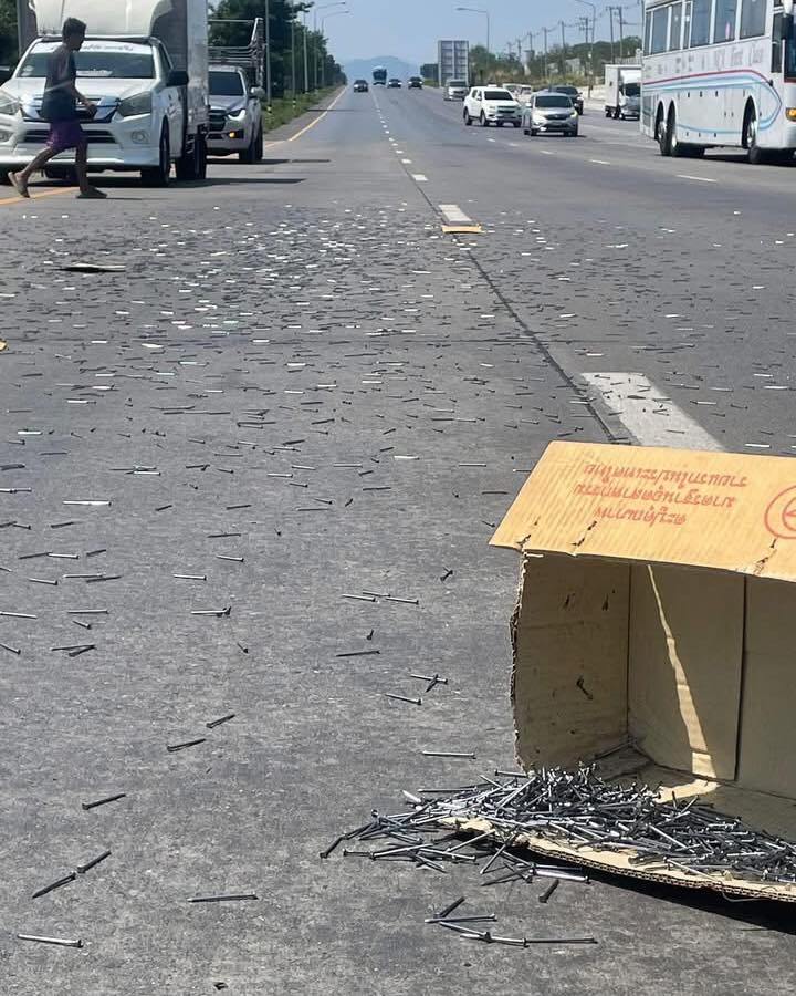 13.23 น. (10 มี.ค.68) ถนนมิตรภาพ ขาออก มุ่งหน้าลำตะคลอง มีกล่องตะปูหล่น ตะปูกระจายบนถนน ทางเข้า มอเตอร์เวย์ M6 เลนขวาเครดิต เพจ ถนนมิตรภาพ-รถติดบอกด้วย