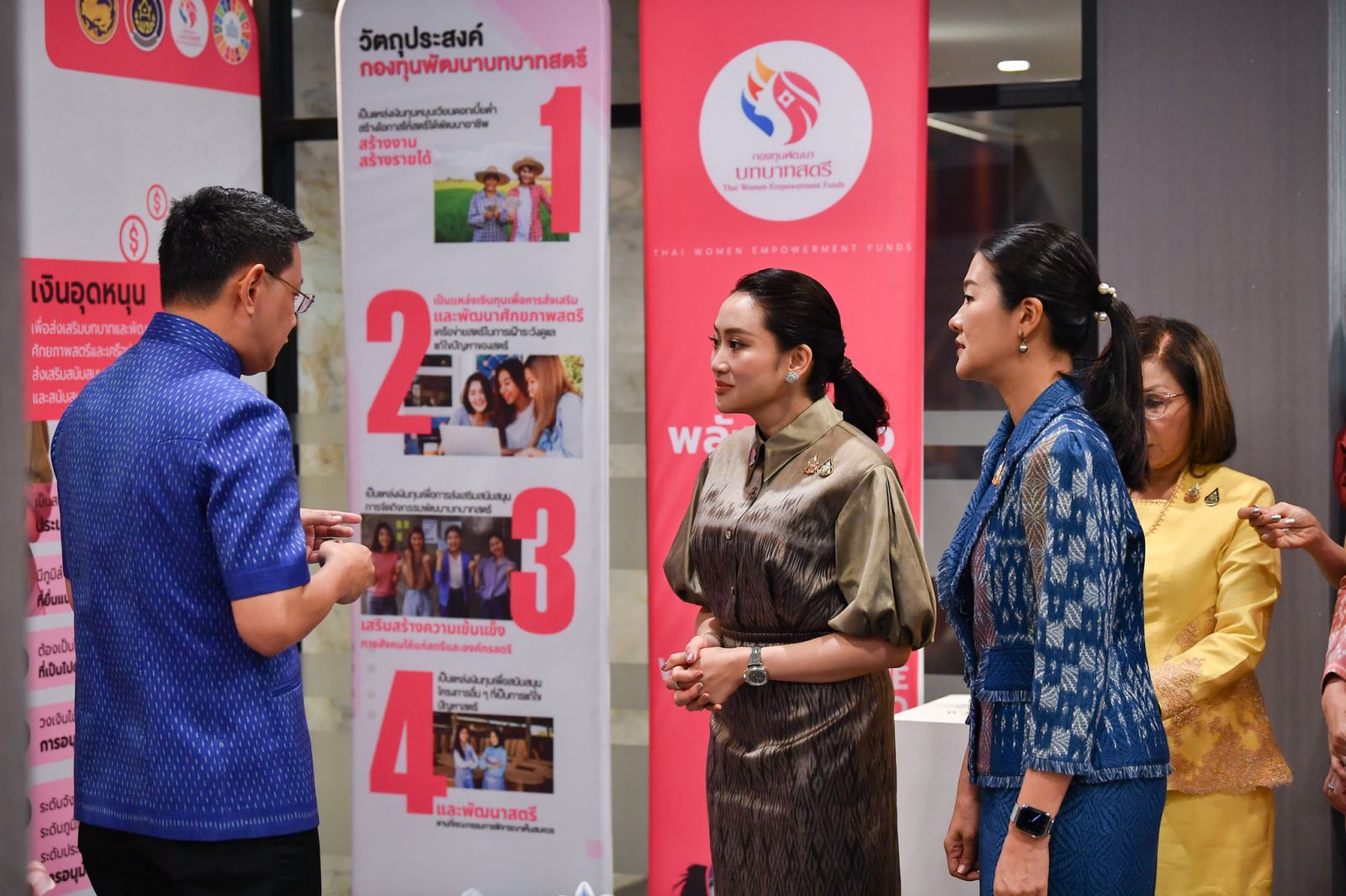 วันนี้ (11 มี.ค. 68) ก่อนการประชุมคณะรัฐมนตรี นางสาวแพทองธาร ชินวัตร นายกรัฐมนตรี ได้เยี่ยมชมนิทรรศการผลงานของกลุ่มอาชีพ สมาชิกกองทุนพัฒนาบทบาทสตรี ที่ได้รับการสนับสนุนเงินทุนหมุนเวียนและประสบผลสำเร็จ จำนวน 4 กลุ่ม ได้แก่ 1. กลุ่มแปรรูปผ้า ฝ้ายใยกัญชงสำเร็จรูป อ.สันกำแพง จ.เชียงใหม่ 2. กลุ่มเครื่องประดับลงยาราชาวดี (by Panida) เขตวังทองหลางกรุงเทพมหานคร 3. กลุ่มผ้าคลุมผมสตรีบ้านลาเวง (LAVA LAWAENG) อ.ศรีสาคร จ.นราธิวาส และ 4. วิสาหกิจ ชุมชนไม้กฤษณา (Mesook farm) อ.เมืองระยอง จ.ระยอง