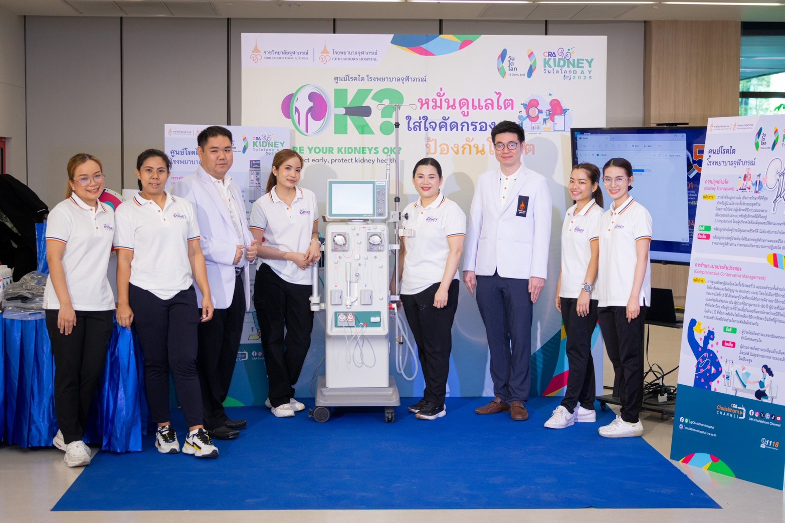 ดังนั้น เพื่อสืบสานพระปณิธานของ ศาสตราจารย์ ดร. สมเด็จพระเจ้าน้องนางเธอ เจ้าฟ้าจุฬาภรณวลัยลักษณ์ อัครราชกุมารี กรมพระศรีสวางควัฒน วรขัตติยราชนารี องค์ประธานผู้ทรงก่อตั้งโรงพยาบาลจุฬาภรณ์ ราชวิทยาลัยจุฬาภรณ์ ให้เป็นที่พึ่งแก่ประชาชนชาวไทย เพื่อให้ผู้ป่วยสามารถได้รับการรักษาด้วยเทคโนโลยีที่ทันสมัยอย่างเท่าเทียม โรงพยาบาลจุฬาภรณ์ ราชวิทยาลัยจุฬาภรณ์ จึงได้จัดกิจกรรมวันไตโลก ประจำปี 2568 “Are Your Kidneys OK? Detect Early, Protect Kidney Health” หมั่นดูแลไต ใส่ใจคัดกรอง ป้องกันโรคไต โดยมี รศ. นพ.สุรศักดิ์ ลีลาอุดมลิปิ รักษาการผู้อำนวยการโรงพยาบาลจุฬาภรณ์ เป็นประธานเปิดงาน ร่วมด้วยทีมแพทย์เฉพาะทางอายุรกรรมโรคไต รพ.จุฬาภรณ์ นำโดย นพ.ศุภณัฐ วรวิชชวงษ์ นพ.ปรัชญา พุมอุทัยวิรัตน์ และ นพ.ปิยพันธ์ ประพันธ์วัฒนะ ร่วมให้ความรู้เกี่ยวกับโรคไตบนเวทีเสวนาและการดูแลผู้ป่วยโรคไตและยังรวมถึงดูแลผู้บริจาคไต เรียกได้ว่า โรงพยาบาลจุฬาภรณ์ดูแลทั้งผู้ให้และผู้รับในการติดตามอาการป่วยเป็นอย่างดี สำหรับกิจกรรมครั้งนี้จัดขึ้น ณ บริเวณ ชั้น 1 อาคารกรมพระศรีสวางควัฒน โรงพยาบาลจุฬาภรณ์ ราชวิทยาลัยจุฬาภรณ์ วันพฤหัสบดีที่ 13 มีนาคม 2568
