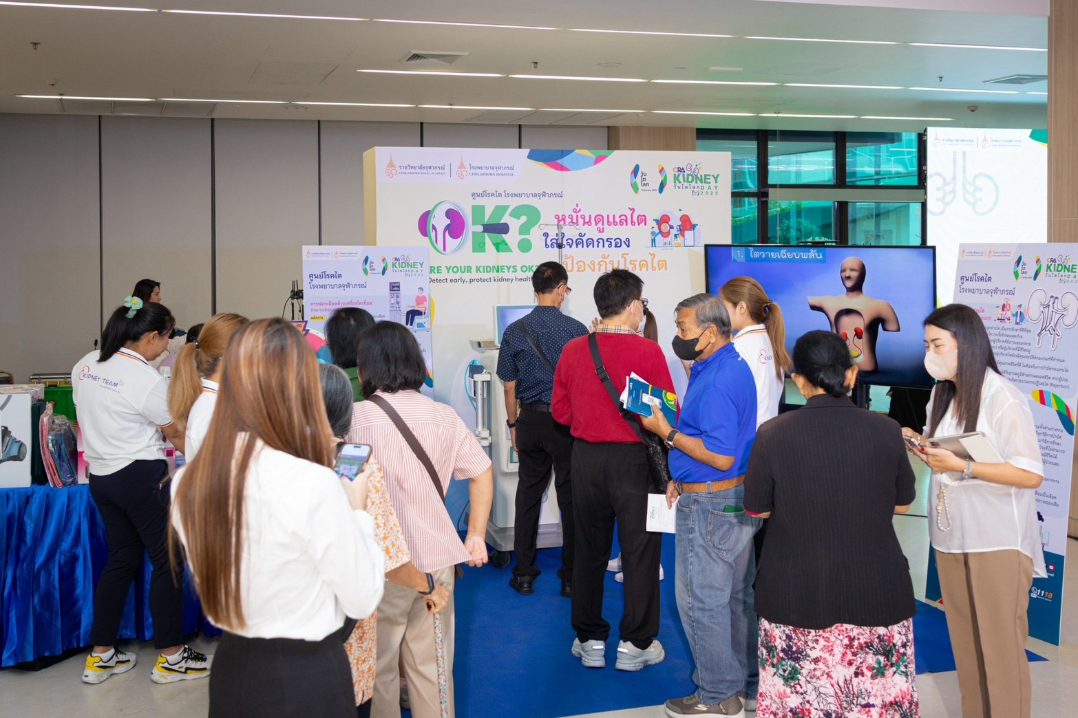 นอกจากนี้ ในงานยังอัดแน่นไปด้วยกิจกรรมตรวจคัดกรอง แนะนำ ปรึกษาดูแลสุขภาพไต เช่น การตรวจหาโปรตีนในปัสสาวะ ตรวจวัคความดันโลหิต แพทย์ให้คำปรึกษาสำหรับผู้ที่มีผลการตรวจโปรตีนในปัสสาวะผิดปกติ โภชนาการอาหารผู้ป่วยโรคไต นิทรรศการเรื่องการบำบัดทดแทนไตและรับบริจาคอวัยวะอีกด้วย