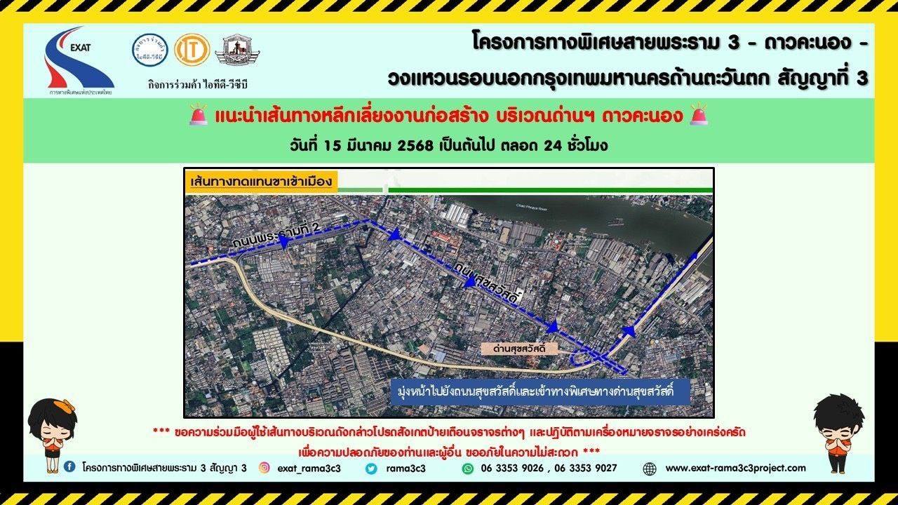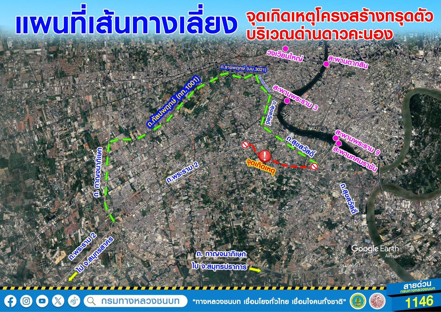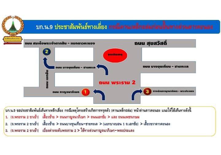การทางพิเศษแห่งประเทศไทย (กทพ.) กระทรวงคมนาคม แจ้งประชาชนวางแผนเส้นทางการเดินทางเข้า-ออกเมือง หากเดินทางบนถนนพระราม 2 ในเช้าวันจันทร์ แนะนำใช้เส้นทางเลี่ยงจุดเกิดเหตุ บริเวณด่านฯ ดาวคะนอง ดังนี้