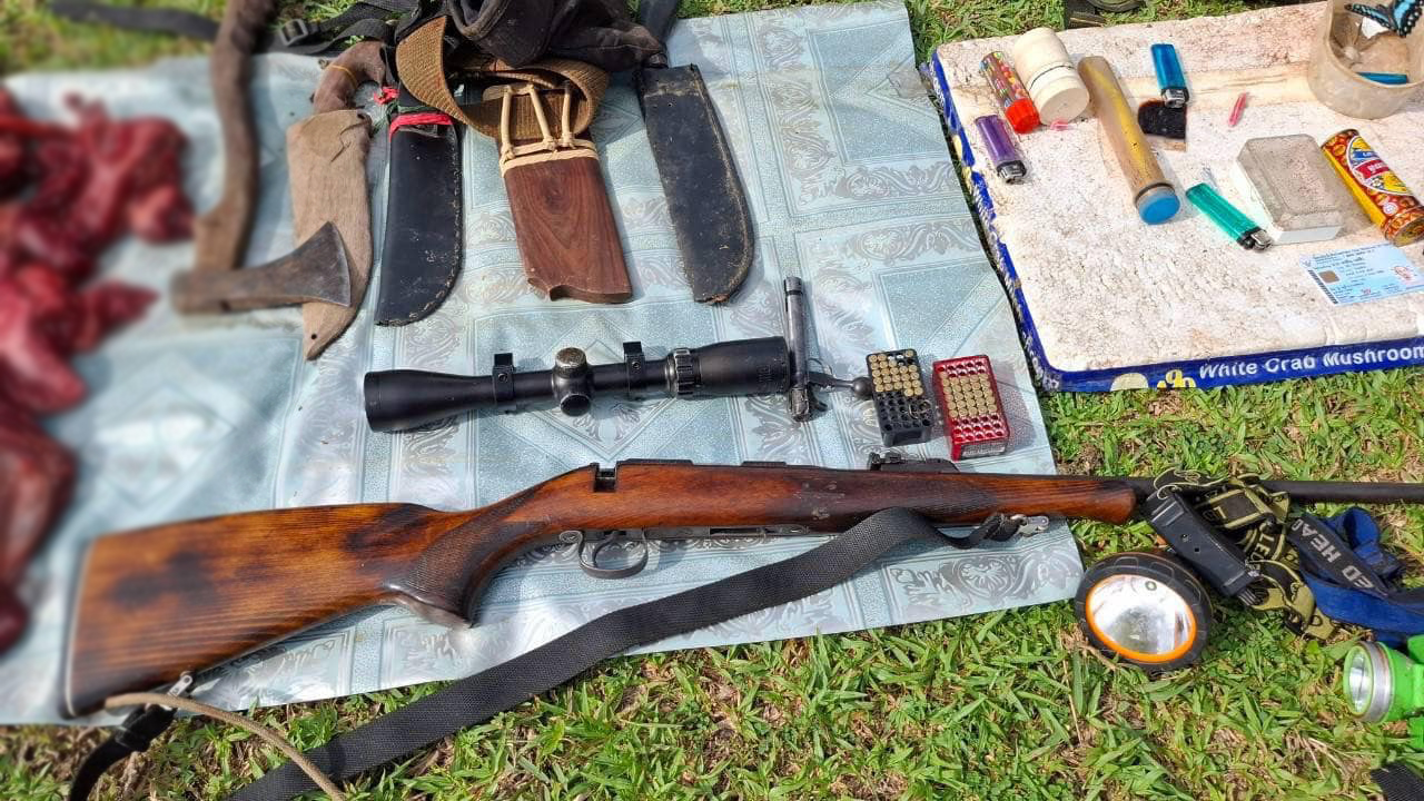 เบตง ตชด.445 ร่วม ตำรวจ สภ.อัยเยอร์เวง เจ้าหน้าที่อุทยานแห่งชาติบางลาง จับแก๊งล่าสัตว์ในป่าฮาลาบาลา ได้ของกลางซากเก้ง อาวุธปืน เครื่องกระสุน และยาเสพติดจำนวนหนึ่ง