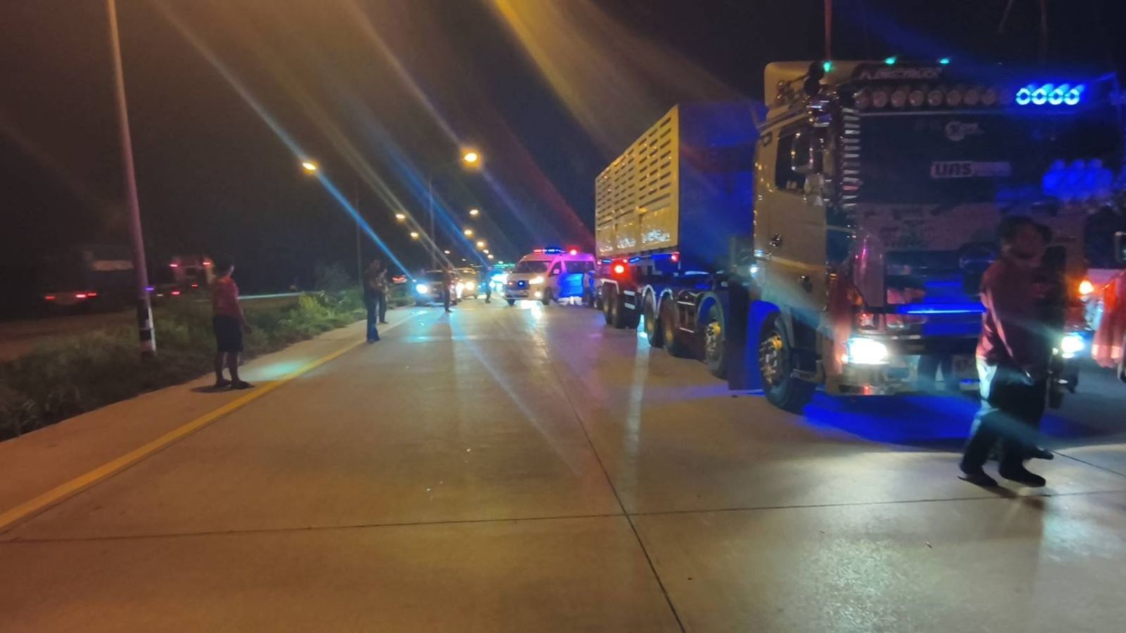 ที่เกิดเหตุพบรถเทรลเลอร์ 10 ล้อยี่ห้อ isuzu rocky สีขาวหมายเลขทะเบียน 86-8140 ชลบุรี ด้านท้ายรถได้รับความเสียหายและพบรถจักรยานยนต์ ยี่ห้อ ฮอนด้าเวฟ 110 ไอ สีน้ำเงินดำ ทะเบียน 5735 ชลบุรี พบชายอายุ 63 ปีนอนหมดสติ และมีนักท่องเที่ยวหญิง3 คน ที่ขับรถผ่านและพบเหตุพอดีได้ให้การช่วยเหลือ ปฐมพยาบาลในเบื้องต้น และตรวจชีพจรไม่พบ จึงช่วยกันปั้มหัวใจ นานกว่า 20 นาที แต่ไม่เป็นผล ผู้บาดเจ็บเสียชีวิตในเวลาต่อมา