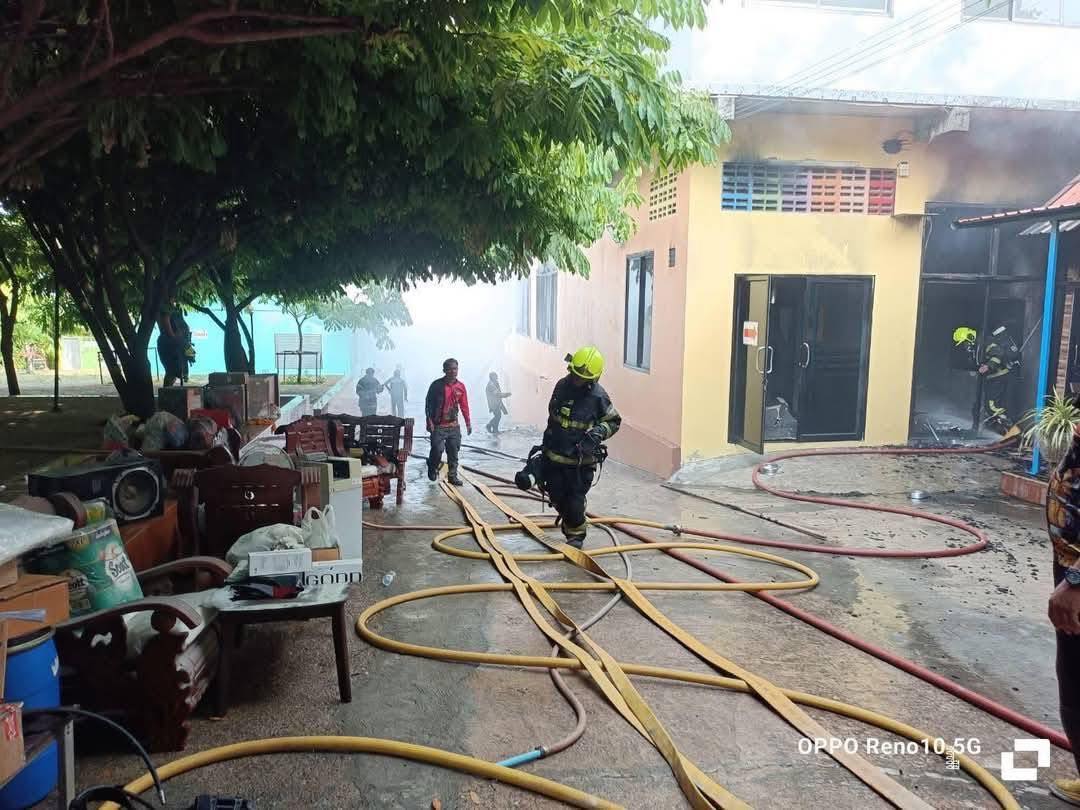 เพลิงไหม้อาคารอเนกประสงค์วัดดัง เมืองภูเก็ต จนท.พร้อมรถดับเพลิงระดมฉีดน้ำควบคุมได้ ไม่ลุกลาม คาดเสียหายกว่า 2 แสนบาท