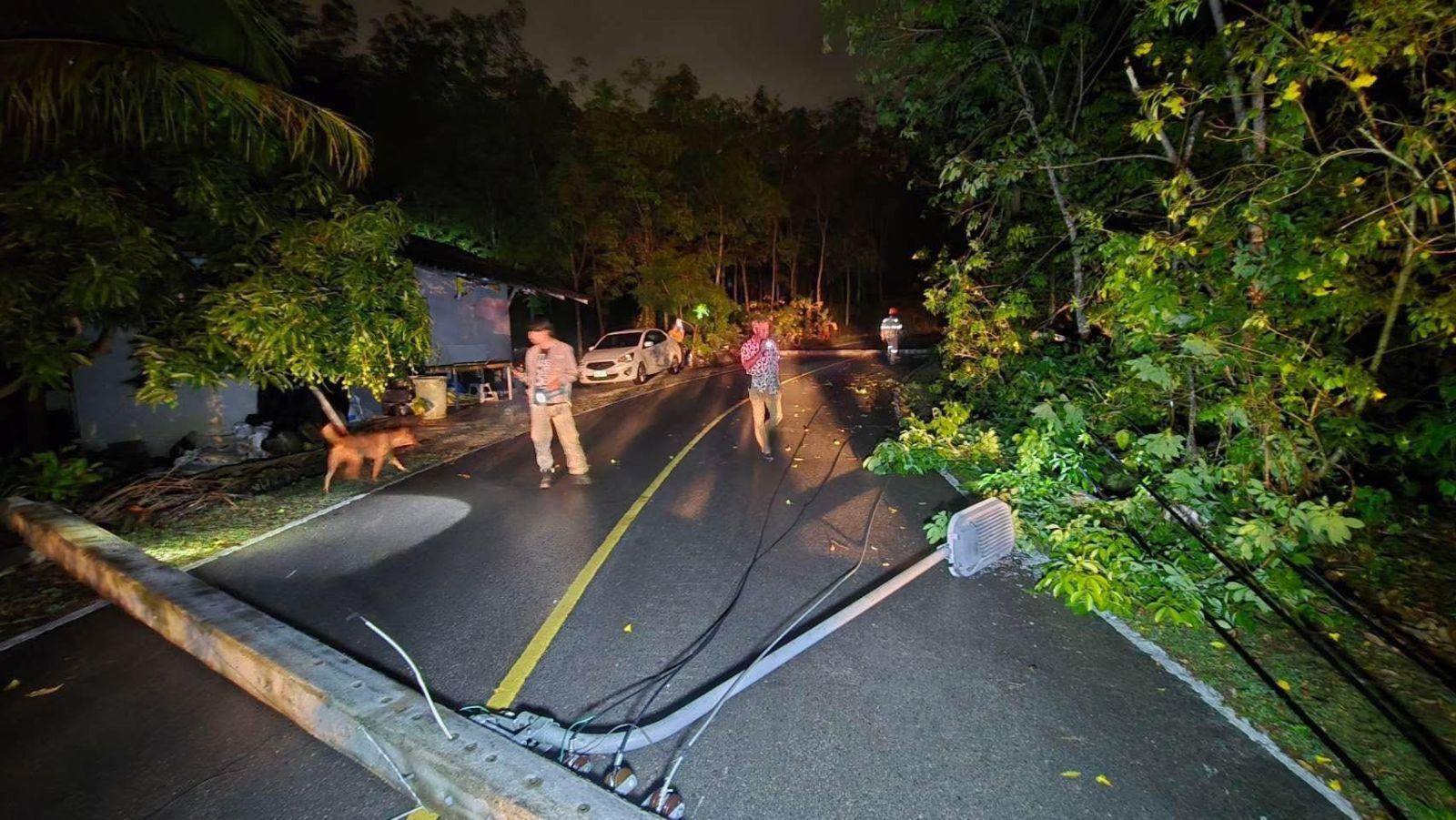 ฝนตก- ลมแรง ต้นไม้หักทับสายไฟแรงสูงล้ม 3 ต้น ถนนทางขึ้นหอชมวิวเขาขาด จนท.เร่งดำเนินการ จ.ภูเก็ต