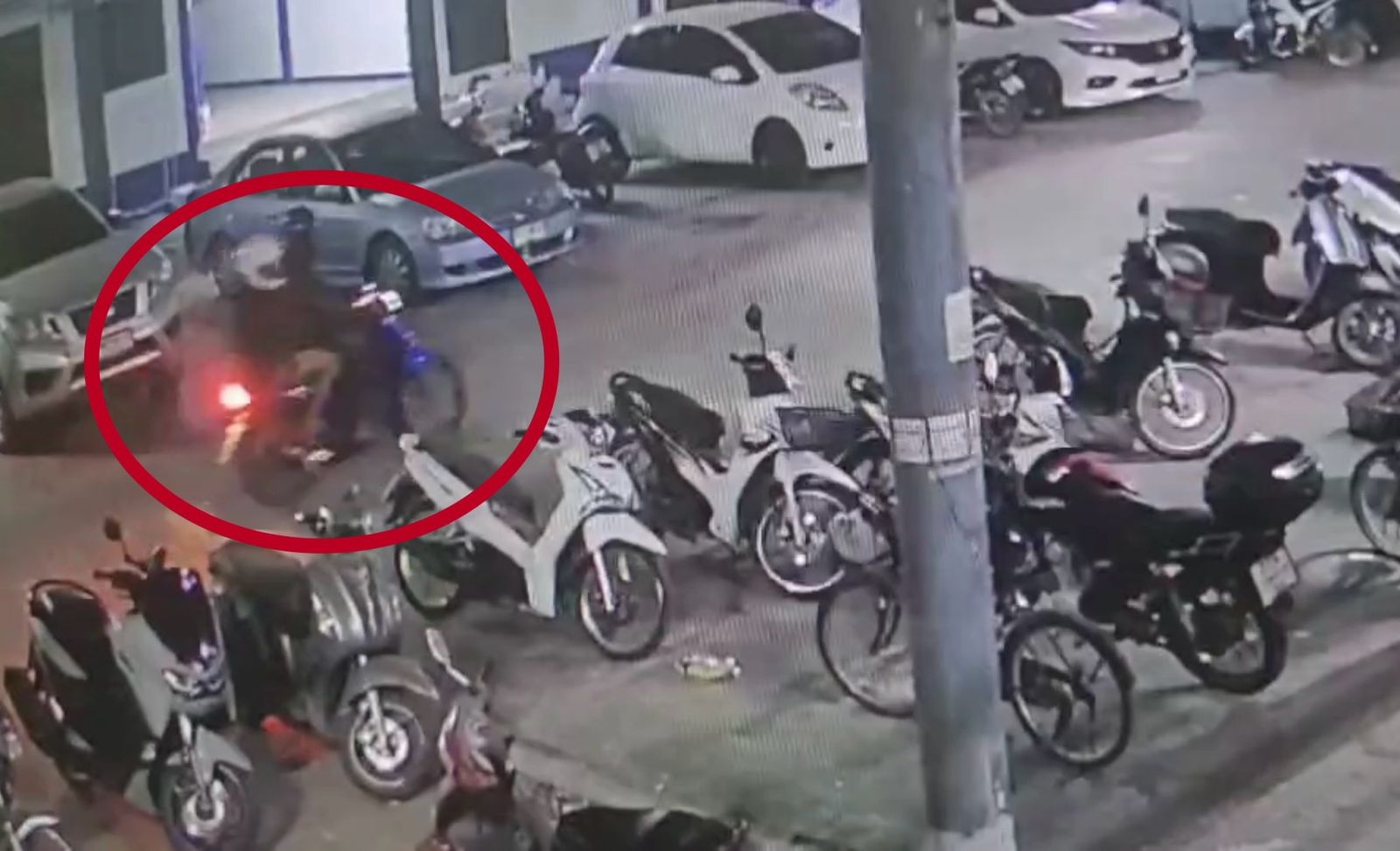 กล้องวงจรปิดบันทึกภาพเหตุการณ์ขณะคนร้ายเป็นชายสองคน สวมหมวกกันน็อกเต็มใบ ขับรถจักรยานยนต์ยี่ห้อฮอนด้า รุ่นเวฟ สีน้ำเงิน ไม่ทราบหมายเลขทะเบียนเข้ามาจอดที่รถจักรยานยนต์ของผู้เสียหาย จากนั้นหนึ่งในคนร้ายได้เดินไปขึ้นคล่อม รถ ก่อนใช้เท้ายันรถหายเข้ากลีบเมฆ