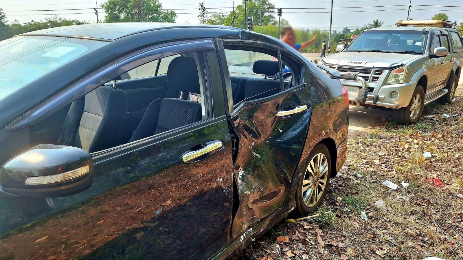 ที่เกิดเหตุ พบรถจักรยานยนต์ ฮอนด้า เวฟ สีแดง - ดำ ลักษณะชนกับรถนั่งส่วนบุคคล ฮอนด้า ซิตี้ สีดำ ป้ายทะเบียน สกลนคร ใกล้กันพบร่างของผู้บาดเจ็บชาย 1 ราย อาสาสมัครเร่งช่วยเหลือแต่ไม่เป็นผล เสียชีวิตในเวลาต่อมา ตรวจสอบเอกสาร เป็นชายไทย อายุ 40 ปี ภูมิลำเนาชาวสกลนคร