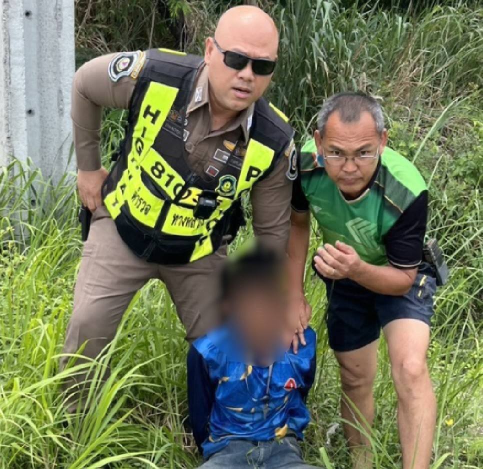 ชุดจับกุมจึงได้รีบเข้าตรวจสอบที่เกิดเหตุ ขณะถึงที่เกิดเหตุพบนายเอก(นามสมมติ) อายุ 18 ปี กำลังก่อเหตุโดยใช้มือลากและดึงสายไฟฟ้าซึ่งใช้ส่งไฟฟ้าบริเวณดังกล่าว เจ้าหน้าที่ตำรวจชุดจับกุมจึงได้แสดงตัวพร้อมทั้งได้ทำการเข้าควบคุมตัวบุคคลดังกล่าวเพื่อทำการจับกุมและตรวจค้น ขณะนั้นนายเอกฯ ได้พบเจ้าหน้าที่ตำรวจจึงได้วิ่งหลบหนีการจับกุม จนกระทั่งสามารถทำการจับกุมตัวไว้ได้บริเวณไหล่ทาง ทางหลวงพิเศษหมายเลข 7 กิโลเมตรที่ 0+500 ตำบลหนองข้างคอก อำเภอเมือง จังหวัดชลบุรี เจ้าหน้าที่ชุดจับกุมจึงได้ทำการตรวจค้น พบของกลางตามรายการดังกล่าว เจ้าหน้าที่ตำรวจชุดจับกุมจึงได้ทำการจับกุม และได้แจ้งสิทธิตามกฎหมายของผู้ต้องหาให้ทราบ