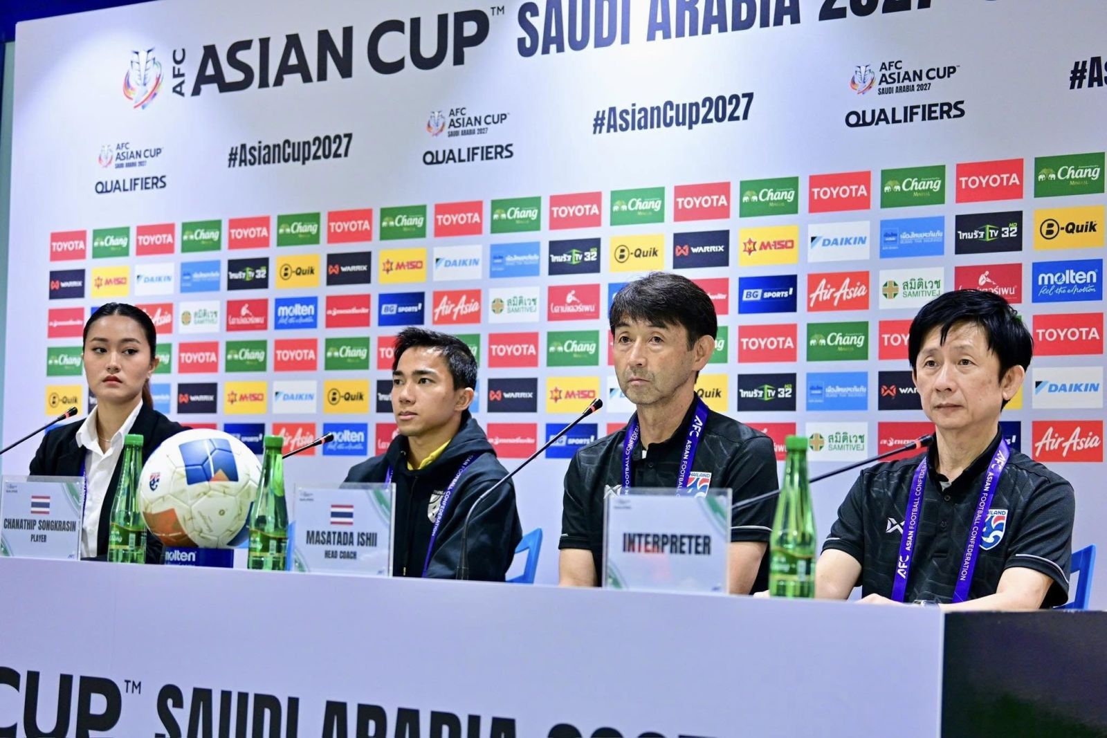 วันที่ 24 มีนาคม 2568 เวลา 10.30 น. ณ ห้องแถลงข่าวสนามราชมังคลากีฬาสถาน ฝ่ายจัดการแข่งขัน จัดงานแถลงข่าวก่อนการแข่งขันฟุตบอลเอเชียน คัพ 2027 รอบคัดเลือก นัดแรก ระหว่าง ทีมชาติไทย พบ ทีมชาติศรีลังกา การแถลงข่าวครั้งนี้ทีมชาติไทย นำโดย มาซาทาดะ อิชิอิ หัวหน้าผู้ฝึกสอน และ ชนาธิป สรงกระสินธ์ กัปตันทีม