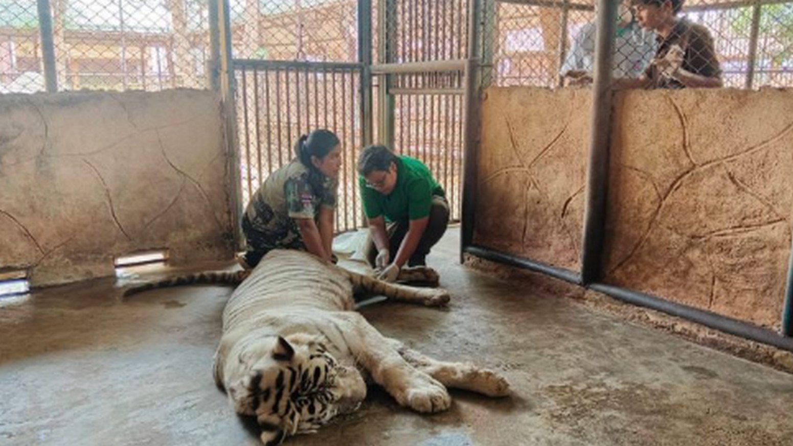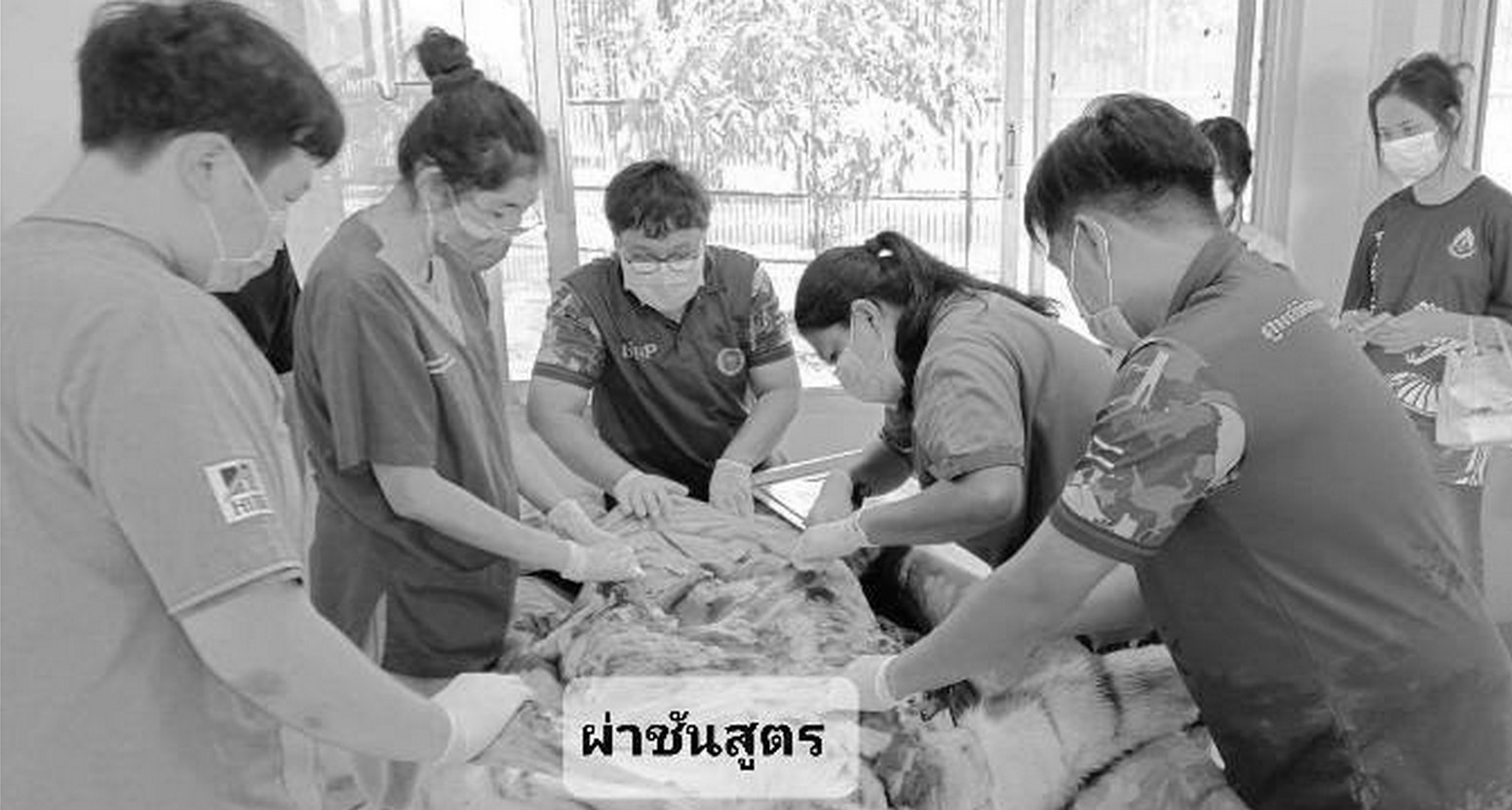 วันที่ 25 มีนาคม 2568 ทีมสัตวแพทย์นำโดย สพ.ญ.ณฐนน ปานเพ็ชร นายสัตวแพทย์ชำนาญการ หัวหน้าเขตห้ามล่าสัตว์ป่าบึงฉวาก และศูนย์พัฒนาการจัดการสัตว์ป่าบึงฉวาก พร้อมคณะเจ้าหน้าที่และนิสิตสัตวแพทย์จากคณะสัตวแพทยศาสตร์ จุฬาลงกรณ์มหาวิทยาลัย ได้ทำการผ่าชันสูตรเสือโคร่งขาว "คุณปู่ซัน" เพศผู้ อายุ 16 ปี ซึ่งเสียชีวิตเมื่อคืนวันที่ 23 มีนาคมที่ผ่านมา