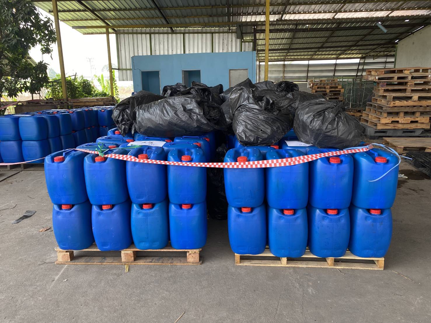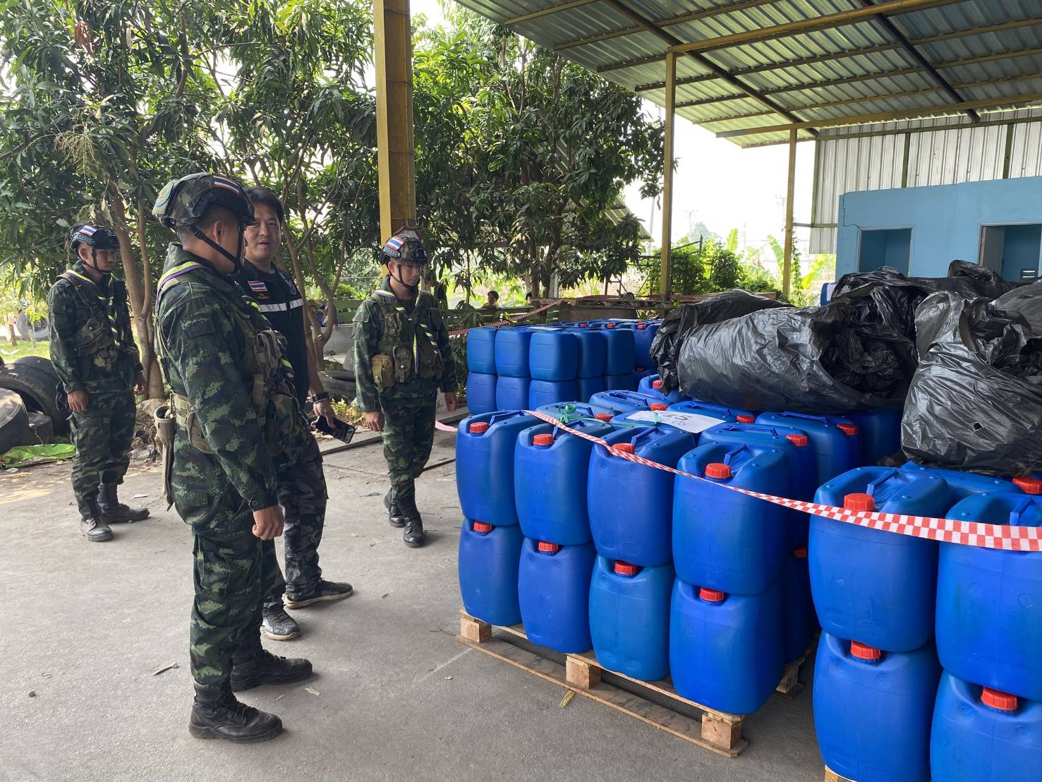 หน่วยมั่นคง จ.ตาก ร่วมตรวจยึดสารเคมี 400 ถัง ใจกลางเมืองแม่สอด จ.ตาก คาดว่าเตรียมส่งข้ามแดน เป็นสารตั้งต้นผลิตยาเสพติด