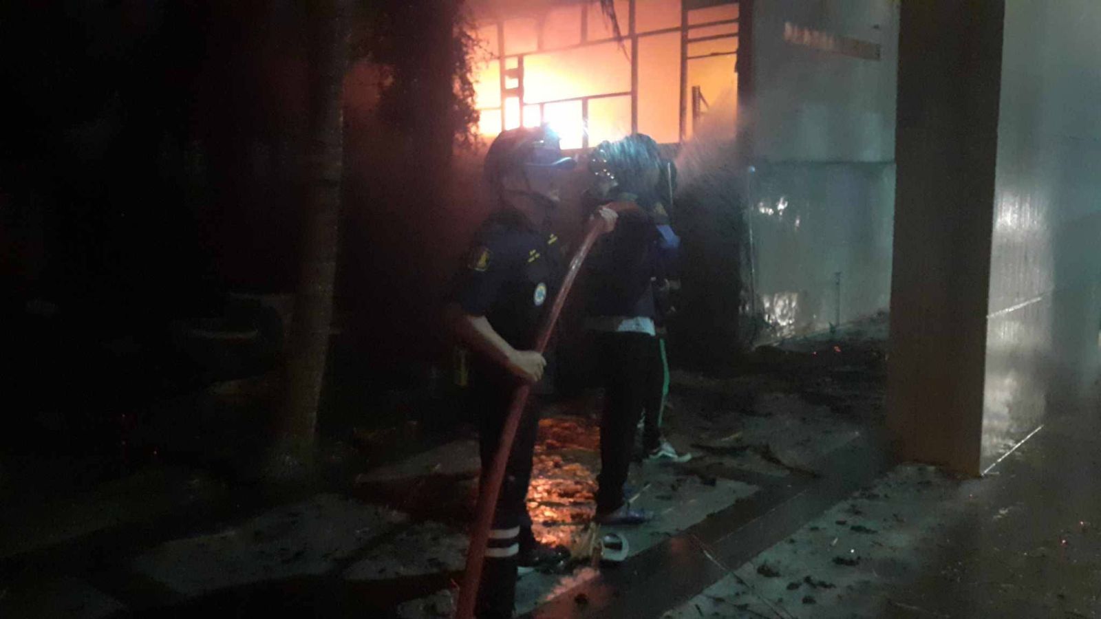 เพลิงไหม้ห้องเก็บของติดกับอาคารพาณิชย์ กลางเมืองสุพรรณบุรี เจ้าหน้าที่พร้อมรถดับเพลิงระดมฉีดน้ำควบคุมไม่ให้ลุกลาม