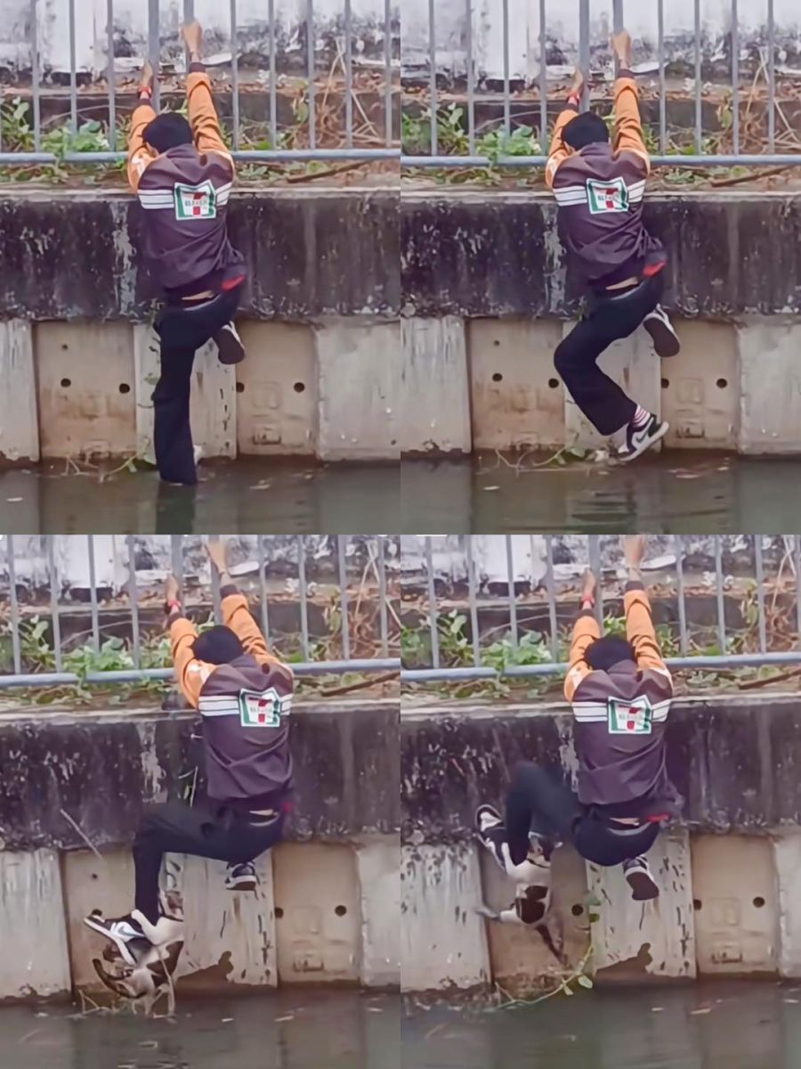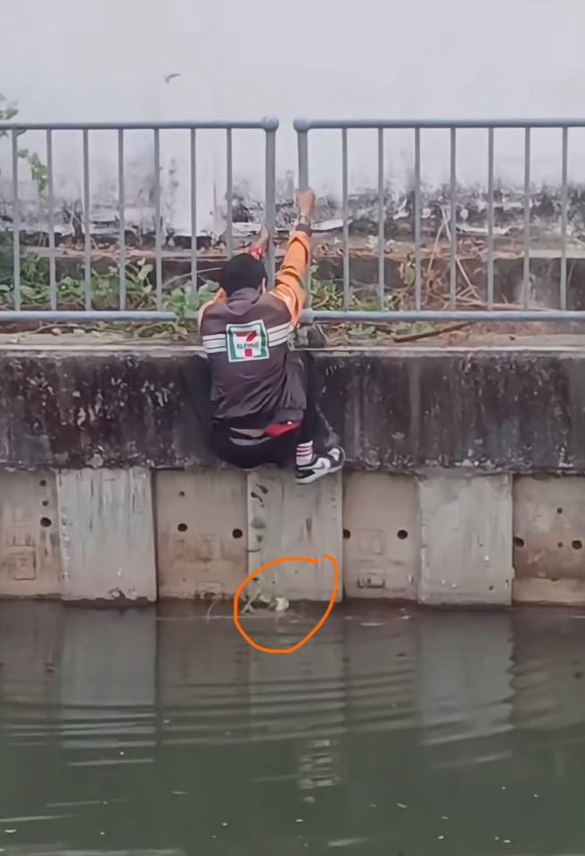 โซเชียลแห่ชื่นชม หนุ่มพนักงานเซเว่น โหนตัวกับรั้วกั้นข้างคลอง ช่วยแมวตกน้ำ