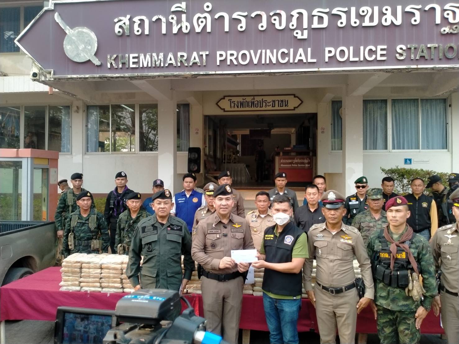 สืบเนื่องเจ้าหน้าที่ชุดปฏิบัติการ ได้รับแจ้งจากสายลับในพื้นที่ว่า จะมีการลักลอบนำยาเสพติดจาก สปป.ลาว มาทางแม่น้ำโขงขึ้นท่าน้ำบ้านอูบมุง – หลักเขต ต.เขมราฐ อ.เขมราฐ จ.อุบลราชธานี จึงวางแผนดักซุ่มตามเส้นทาง จนพบรถยนต์เก๋ง สีดำ เข้ามายังพื้นที่ พร้อมทั้งมีชายวัยรุ่นลงรถมายกกระสอบปุ๋ย สีเขียว 2 กระสอบ สีฟ้า 2 กระสอบ ออกมาจากพงหญ้ามาขึ้นรถ แลัวขับมุ่งหน้าไปสี่แยกบ้านถ้ำเสือ จนถึงแยกไฟแดงดอนตาล จึงได้แสดงตัวเข้าจับตรวจค้น และพบกับขอกลางดังกล่าว จึงได้ควบคุมตัวไว้ และดำเนินการขยายผล จนตามไปจับกุมผู้ต้องหารายอื่นเพิ่มเติมได้ทั้งหมด