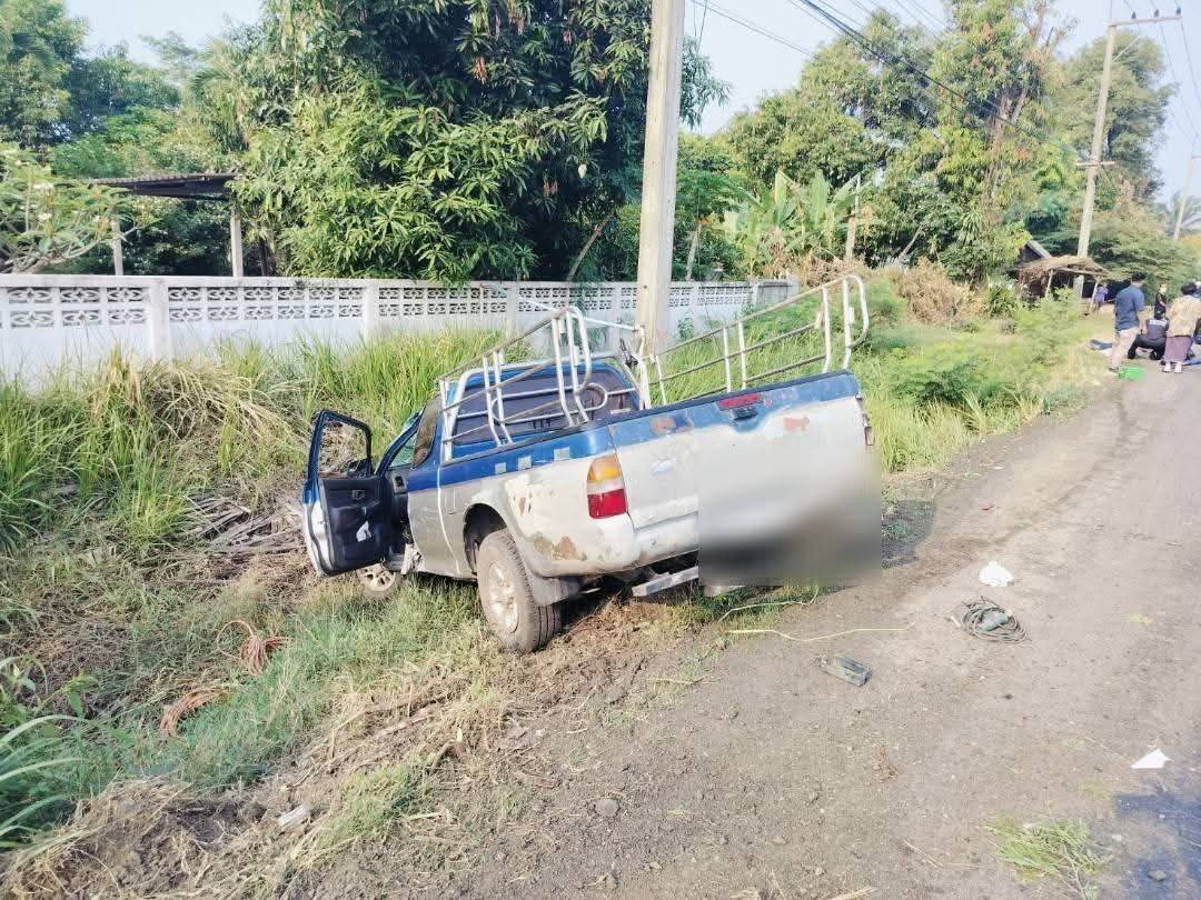 รถกระบะเสียหลักชนขอบทาง ถนนสายสุรินทร์ - ศีรขรภูมิ บาดเจ็บ 1 และเสียชีวิต 1 ราย จ.สุรินทร์