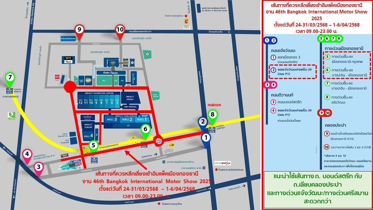 27 มี.ค. 68 เวลา 15.40 น. สภาพจราจรเข้า/ออก อิมแพ็ค เมืองทองธานี ชะลอตัว บริเวณแยกสัญญาณไฟ IMPACT FORUM และวงเวียนเมืองทองฯ