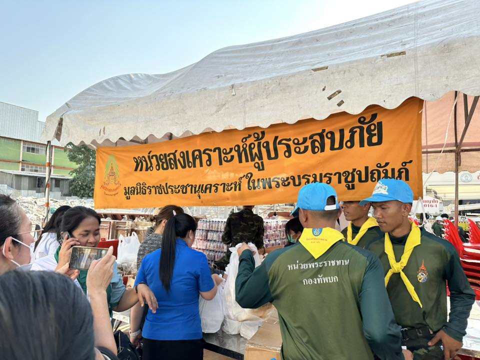เพื่อให้การสนับสนุนเบื้องต้นแก่ผู้ปฏิบัติงานช่วยเหลือผู้ประสบภัย โดยสนับสนุนอาหารกล่อง และน้ำดื่ม จำนวน 500 ชุด ในเบื้องต้น และจัดเต็นท์อำนวยการ สำหรับรองรับผู้บาดเจ็บจากเหตุแผ่นดินไหว และสนับสนุนกิจการต่าง ๆ ในพื้นที่ จำนวน 3 หลัง