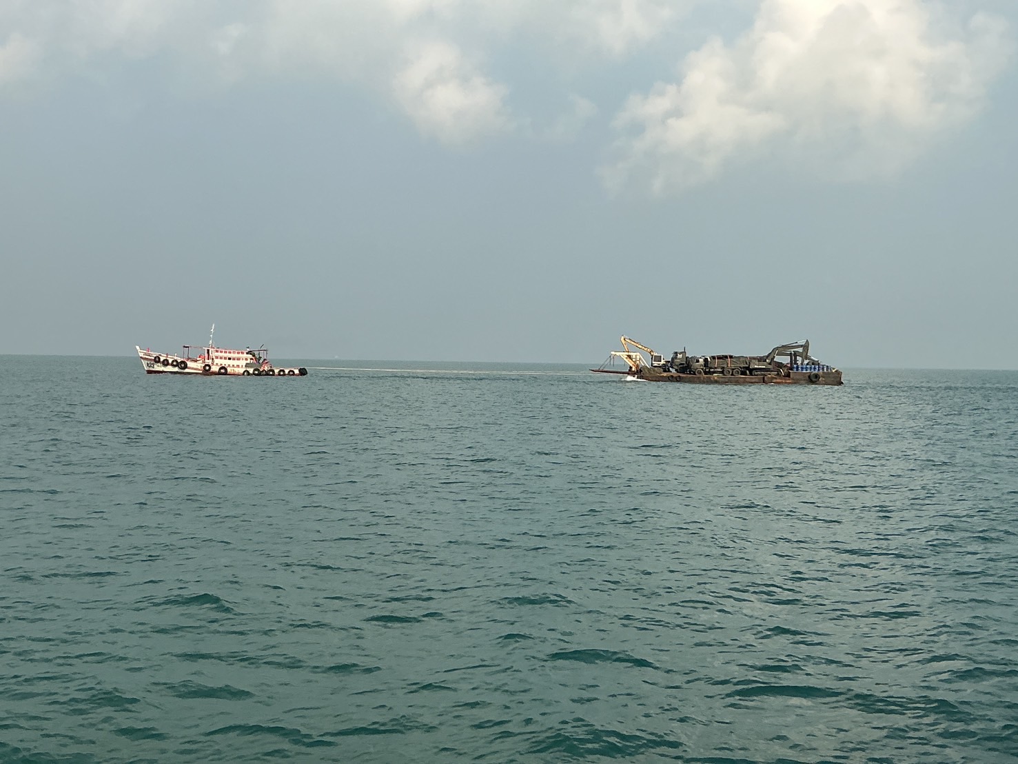 สำหรับยุทโธปกรณ์ที่ใช้ในการดำเนินงาน ประกอบด้วย รถโกยตักติดหัวเจาะกระเทาะหิน, รถบดสั่นสะเทือน, รถบรรทุกขนาด 10 ตัน, รถบรรทุก 5 ตันสำหรับลากจูง รวมถึงกำลังพลทหารช่างจิตอาสาจำนวน 16 นาย โดยทั้งหมดถูกลำเลียงทางเรือบาร์จจากท่าเรือเกาะลอย อำเภอศรีราชา ไปยังเกาะสีชัง ใช้เวลาขนย้ายประมาณ 4–5 ชั่วโมง