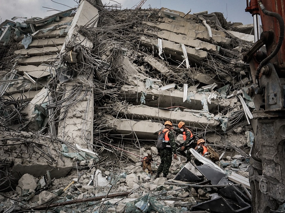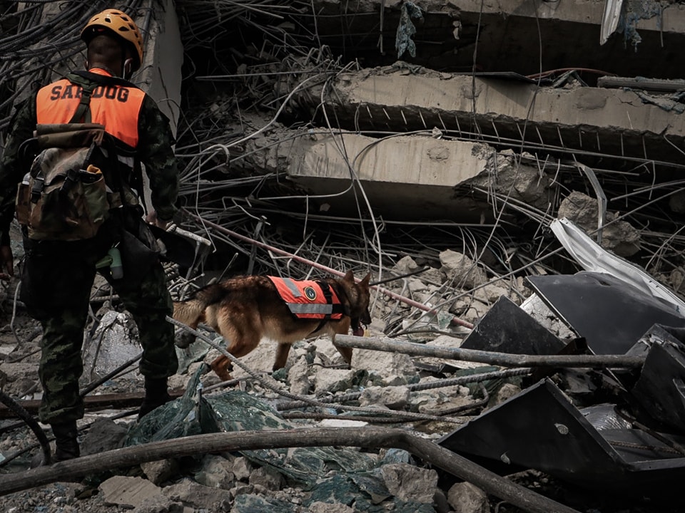 เช้าวันอาทิตย์ที่ 30 มีนาคม 2568 เวลา 09.30–10.00 น. น้องจิ๋ว สุนัขทหารสายพันธุ์ มาลีนอยด์ เพศผู้ อายุ 1 ปี จาก ศูนย์การสุนัขทหาร กรมการสัตว์ทหารบก ลงพื้นที่ร่วมภารกิจค้นหาและช่วยเหลือผู้ประสบภัยจากเหตุ อาคารสำนักงานตรวจเงินแผ่นดินถล่ม โซน D เขตจตุจักร กรุงเทพมหานคร โดยปฏิบัติหน้าที่ร่วมกับเจ้าหน้าที่ USAR จากกรมป้องกันและบรรเทาสาธารณภัย