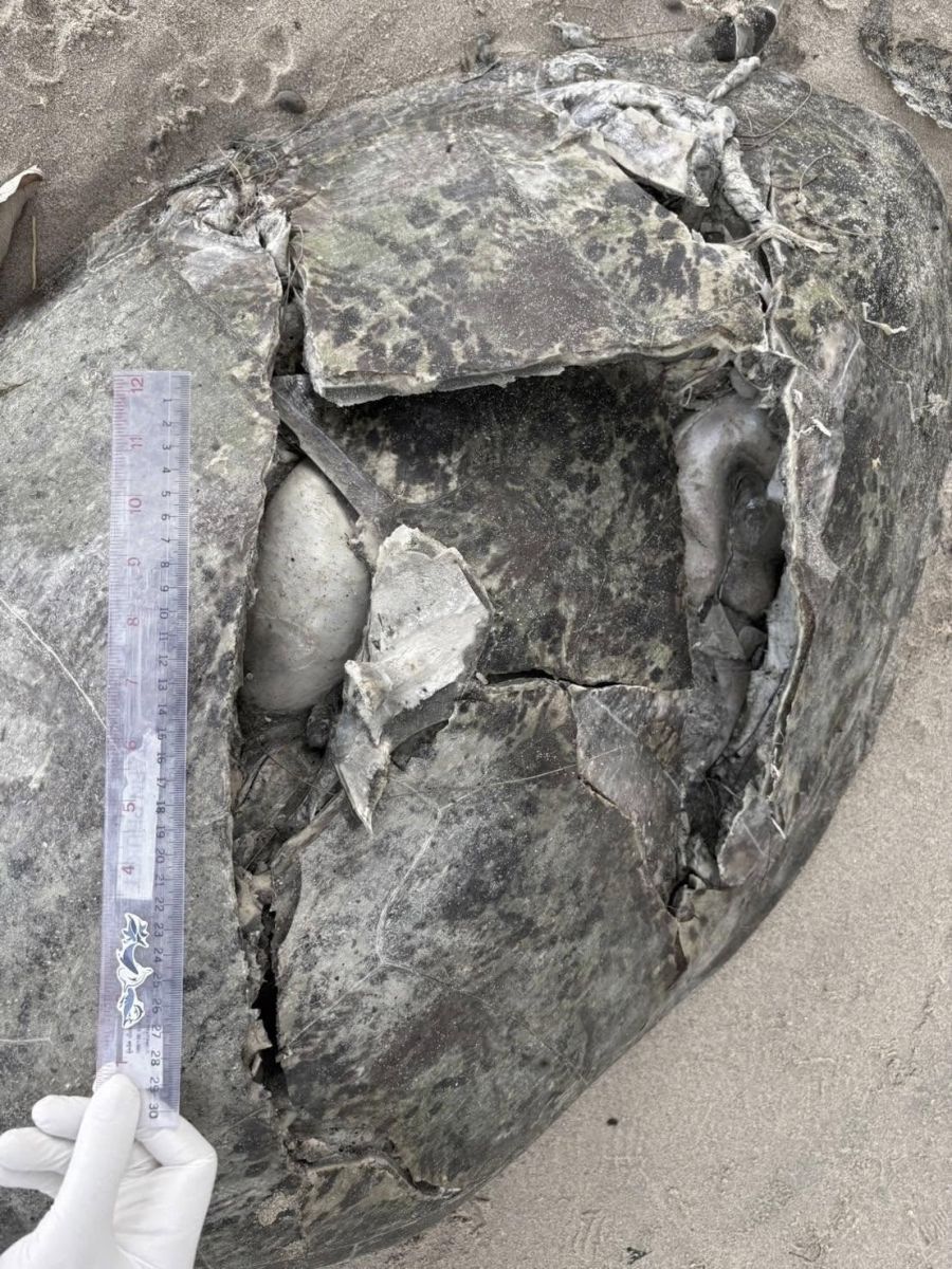 ส่วนของกระดองหลังพบรอยแตกแยกขนาดใหญ่ โดยพบลักษณะขอบรอยแตกมีความคมคาดว่าเกิดการกระแทกแรงจากของแข็งมีคม และพบรอยแตกของกระดองด้านขวาเกิดจากของแข็งมีคมเช่นกัน แต่ไม่พบรอยช้ำของอวัยวะภายใน จึงคาดว่ารอยแผลเกิดขึ้นหลังการตาย