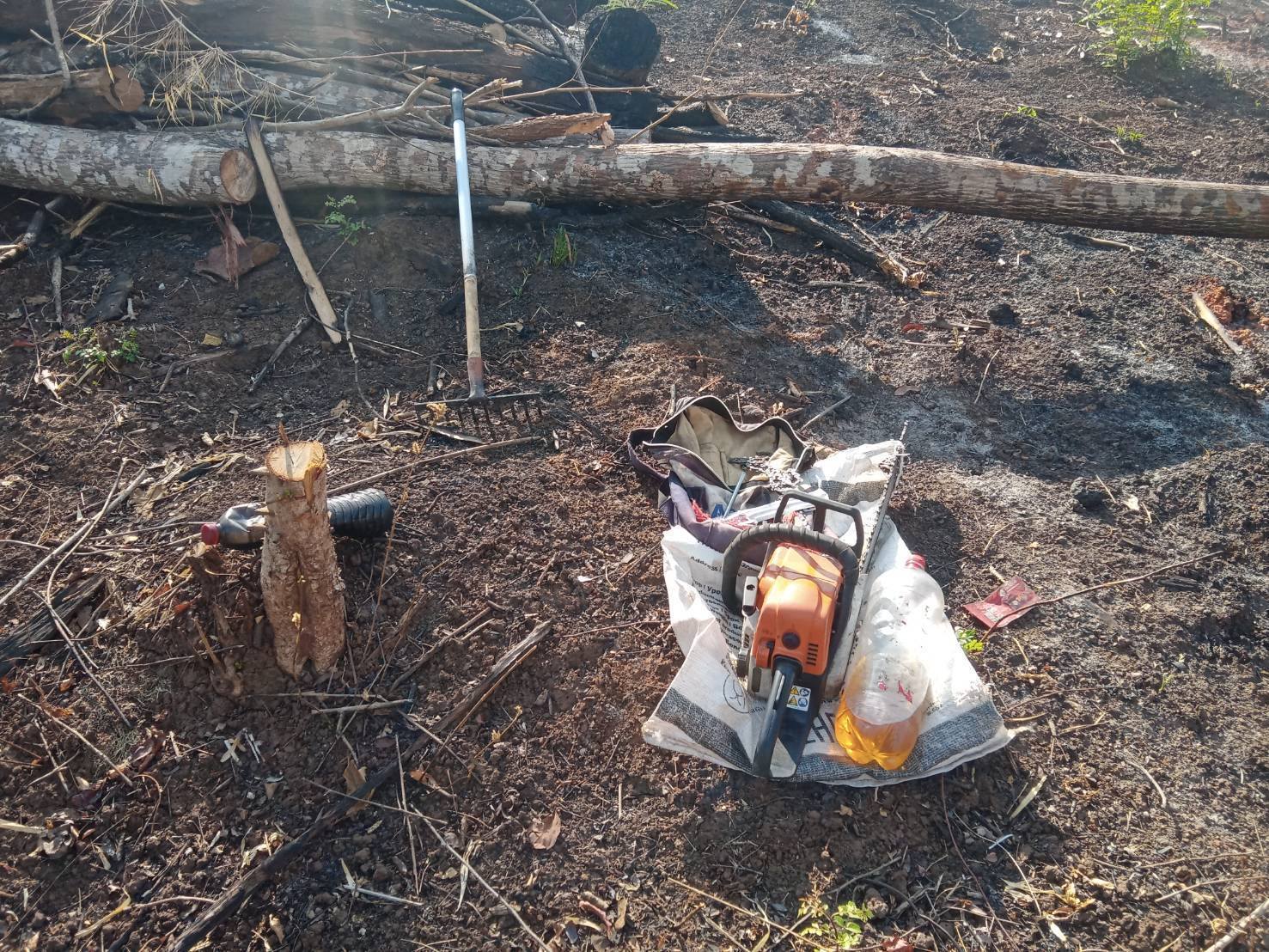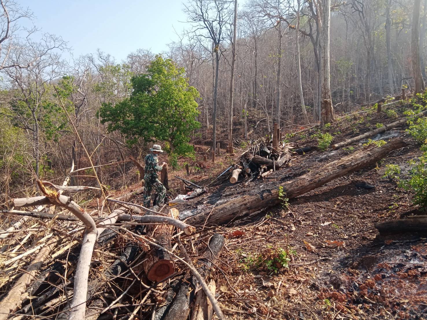 จากการตรวจสอบพบพื้นที่ถูกบุกรุกแผ้วถางจำนวน 6 ไร่ 1 งาน 60 ตารางวา พร้อมของกลางที่ผู้กระทำผิดทิ้งไว้ในที่เกิดเหตุ ประกอบด้วย