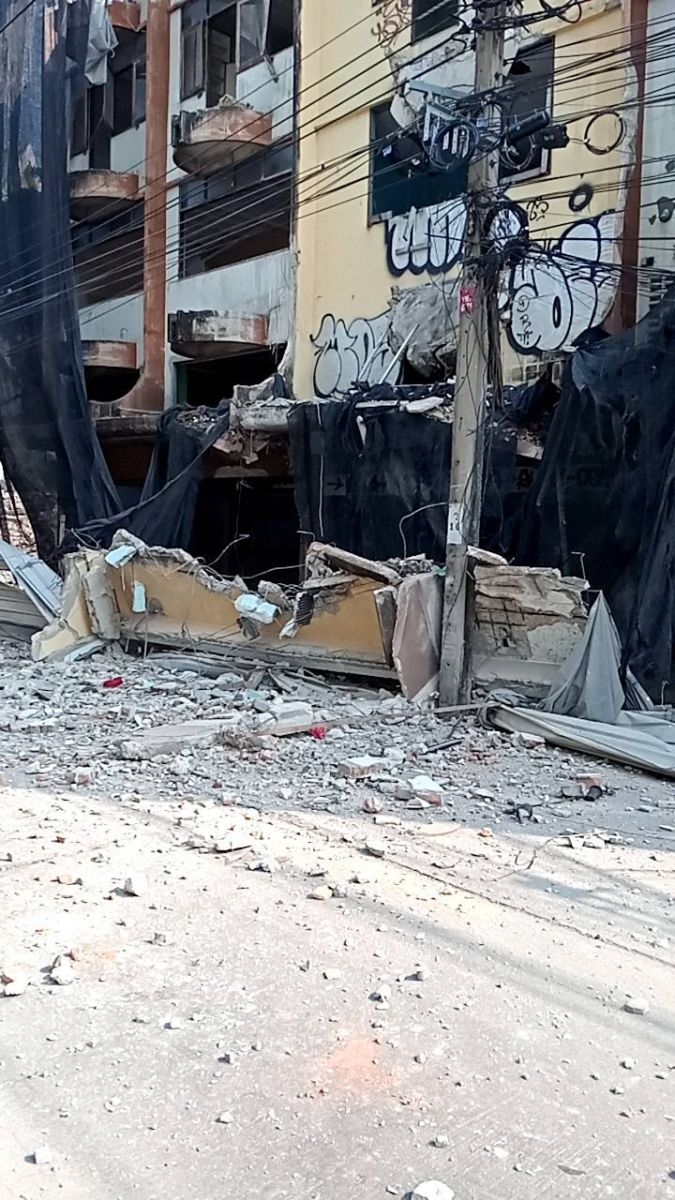 เมื่อเวลา 15.30 น. รับแจ้ง มีอาคารอยู่ระหว่างการรื้อถอน พังลงมา มีแผ่นปูนและเศษกองวัสดุร่วงหล่นตกลงบนพื้นผิวการจราจร เส้นทางดังกล่าว