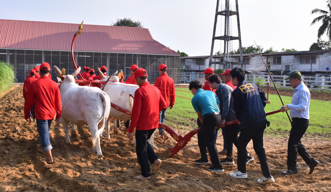 ในโอกาสนี้ ปลัดกระทรวงเกษตรฯ พร้อมทั้งเทพีคู่หาบทอง-คู่หาบเงิน ได้รับชมการสาธิตการฝึกซ้อมไถโดยพระโคคู่แรกนา และพระโคสำรอง รวมทั้งร่วมการฝึกซ้อมไถกับพระโคคู่แรกนา ณ ลานอเนกประสงค์ ศูนย์วิจัยการผสมเทียมและเทคโนโลยีชีวภาพราชบุรี ซึ่งการตรวจเยี่ยมการจัดเตรียมพระโคในครั้งนี้ ถือเป็นการเตรียมความพร้อมสำหรับการจัดงานพระราชพิธีพืชมงคลจรดพระนังคัลแรกนาขวัญ ประจำปี 2568 ที่จะจัดขึ้นในวันที่ 9 พฤษภาคม 2568 ณ มณฑลพิธีท้องสนามหลวง อีกด้วย