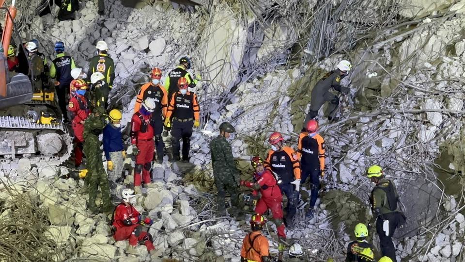 ฝนตกหนัก หยุดปฏิบัติงานชั่วคราว การค้นหาร่างผู้สูญหายในซากตึก สตง.